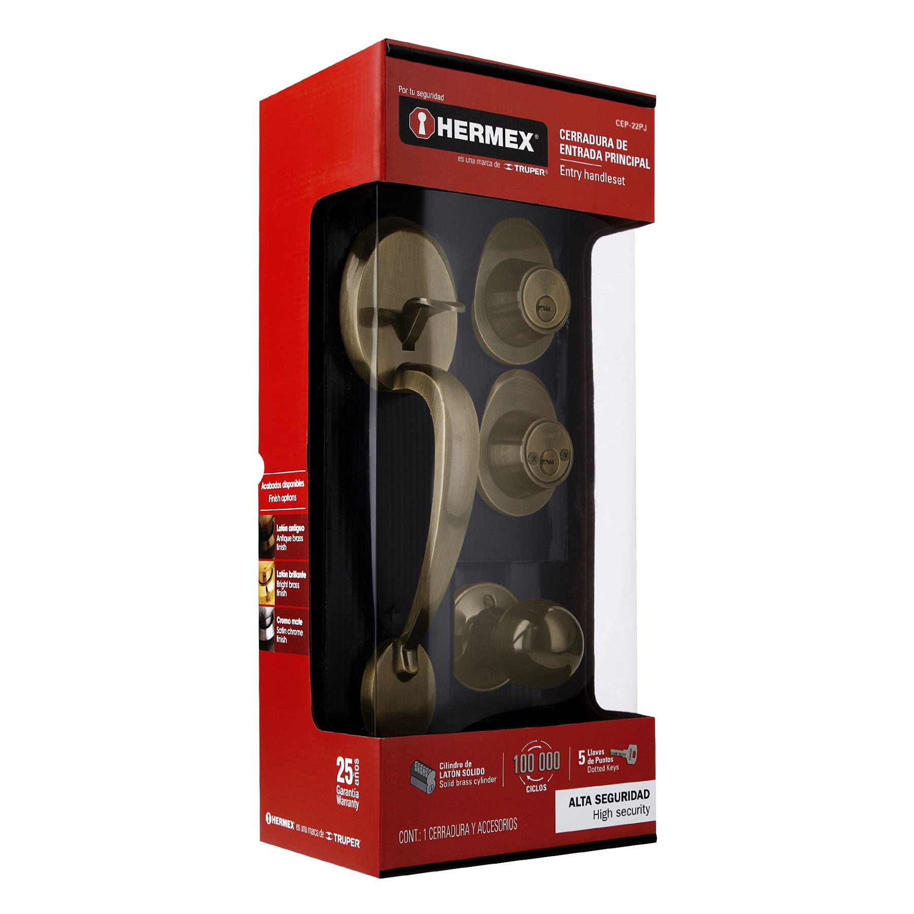 Cerradura entrada, latón antiguo, doble, pomo-jaladera