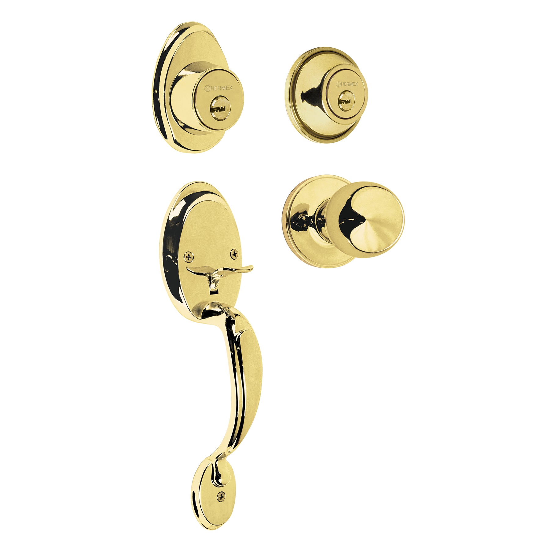 Cerradura entrada, latón brillante, doble, pomo-jaladera