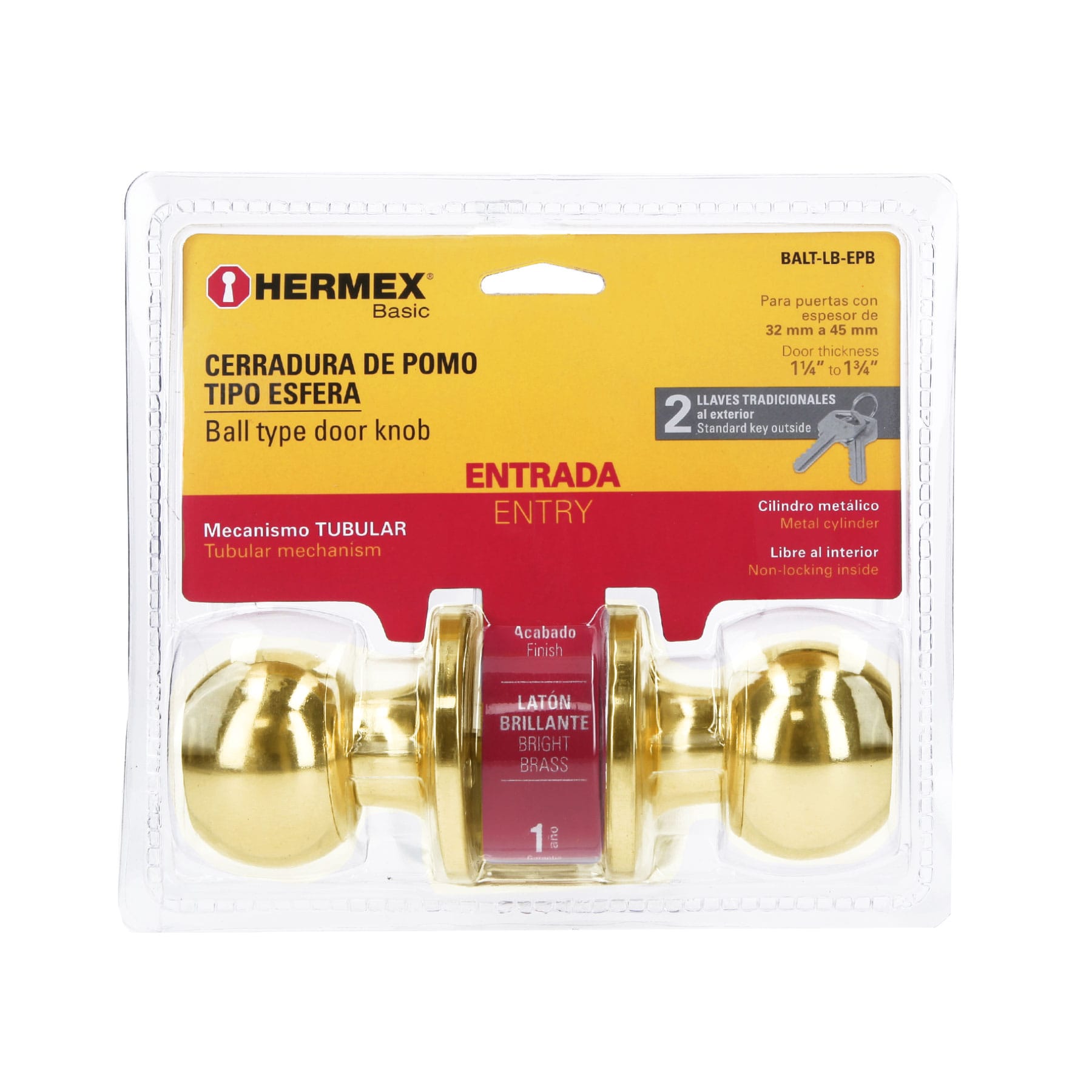 - Para instalación en puertas de 1-1/4" a 1-3/4" (32 a 45 mm)