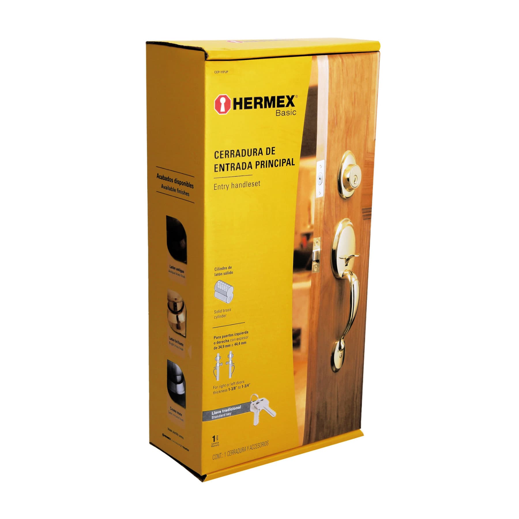 Cerradura, latón brillante, mariposa, pomo, Hermex Basic