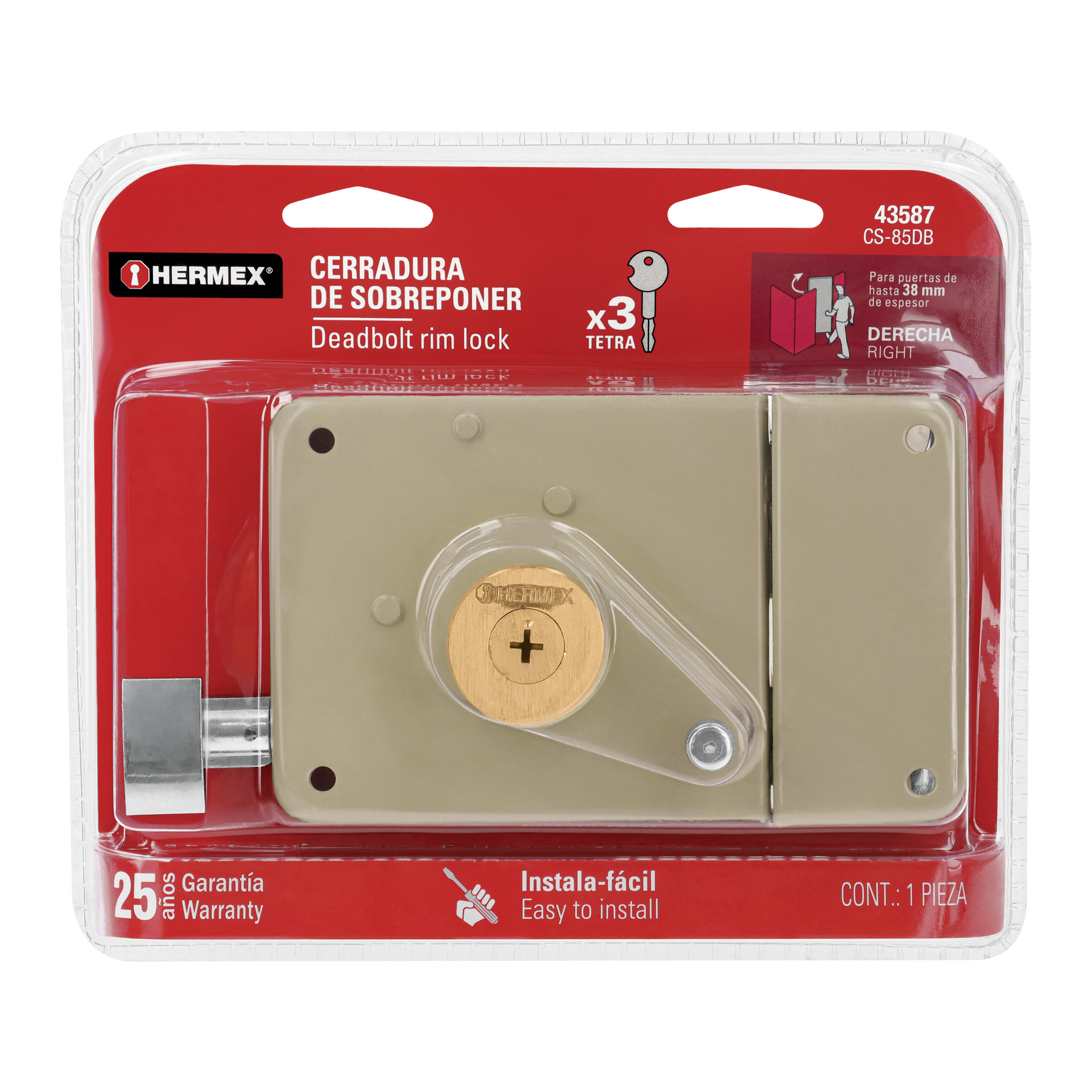 Cerradura sobreponer, clásica, fácil, tetra, der., blíster