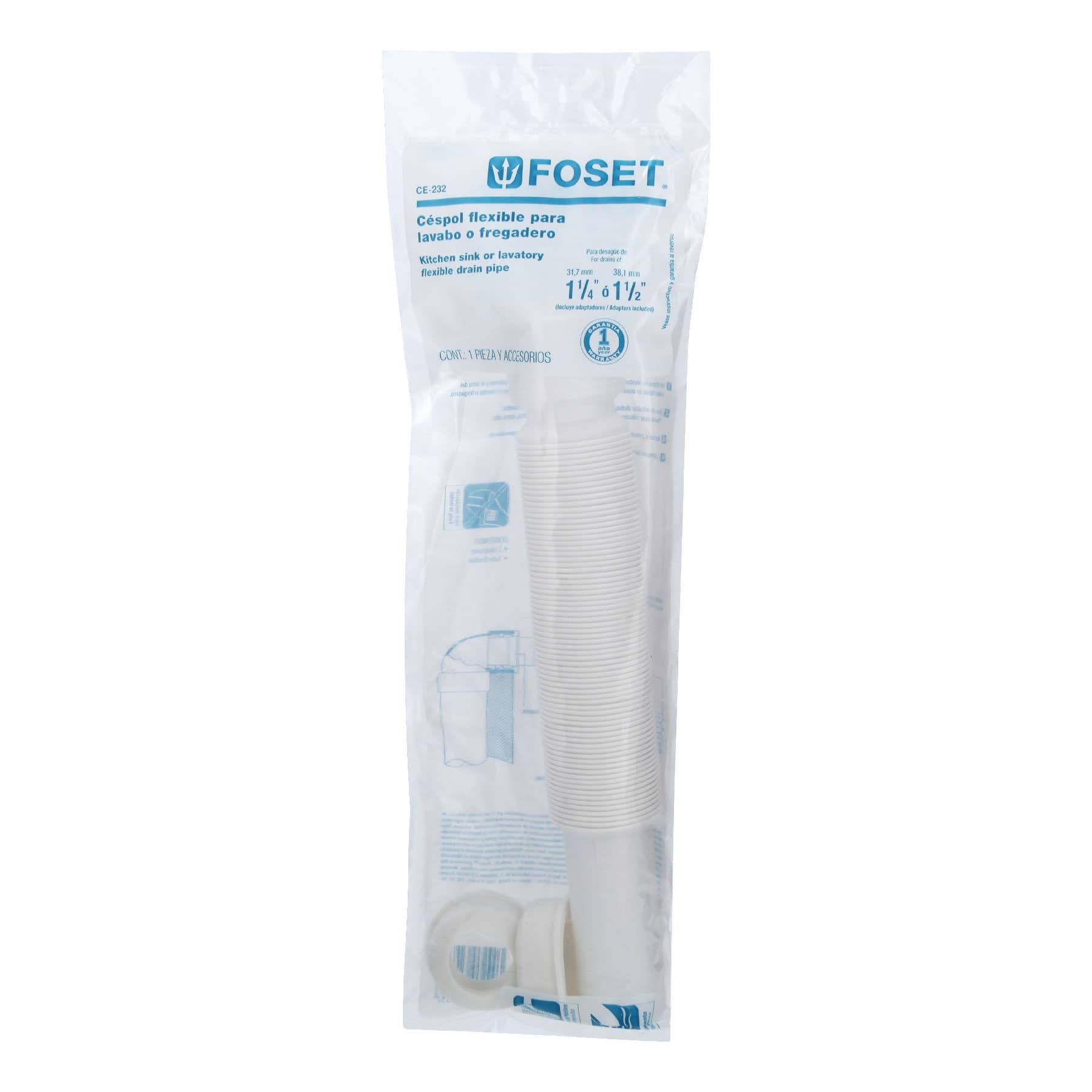 Céspol flexible p/lavabo y fregadero, polipropileno, blanco