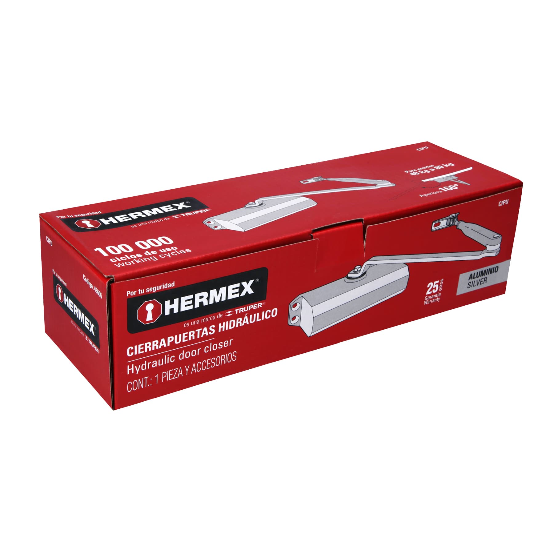 Cierrapuertas hidráulico color aluminio