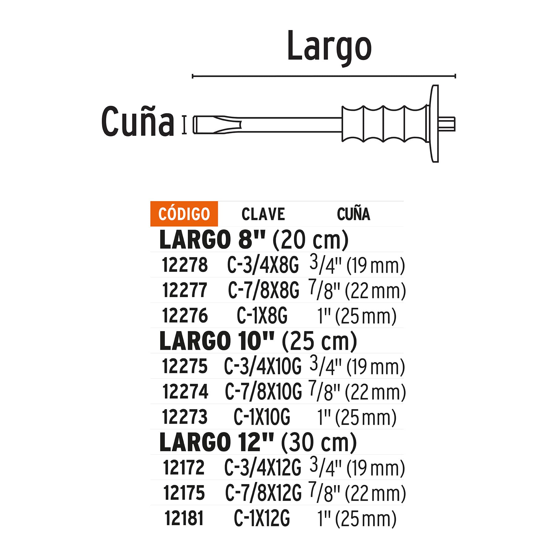| 12278 | C-3/4X8G | 3/4" (19 mm) | 8" (20 cm) | 36 | 1152 |