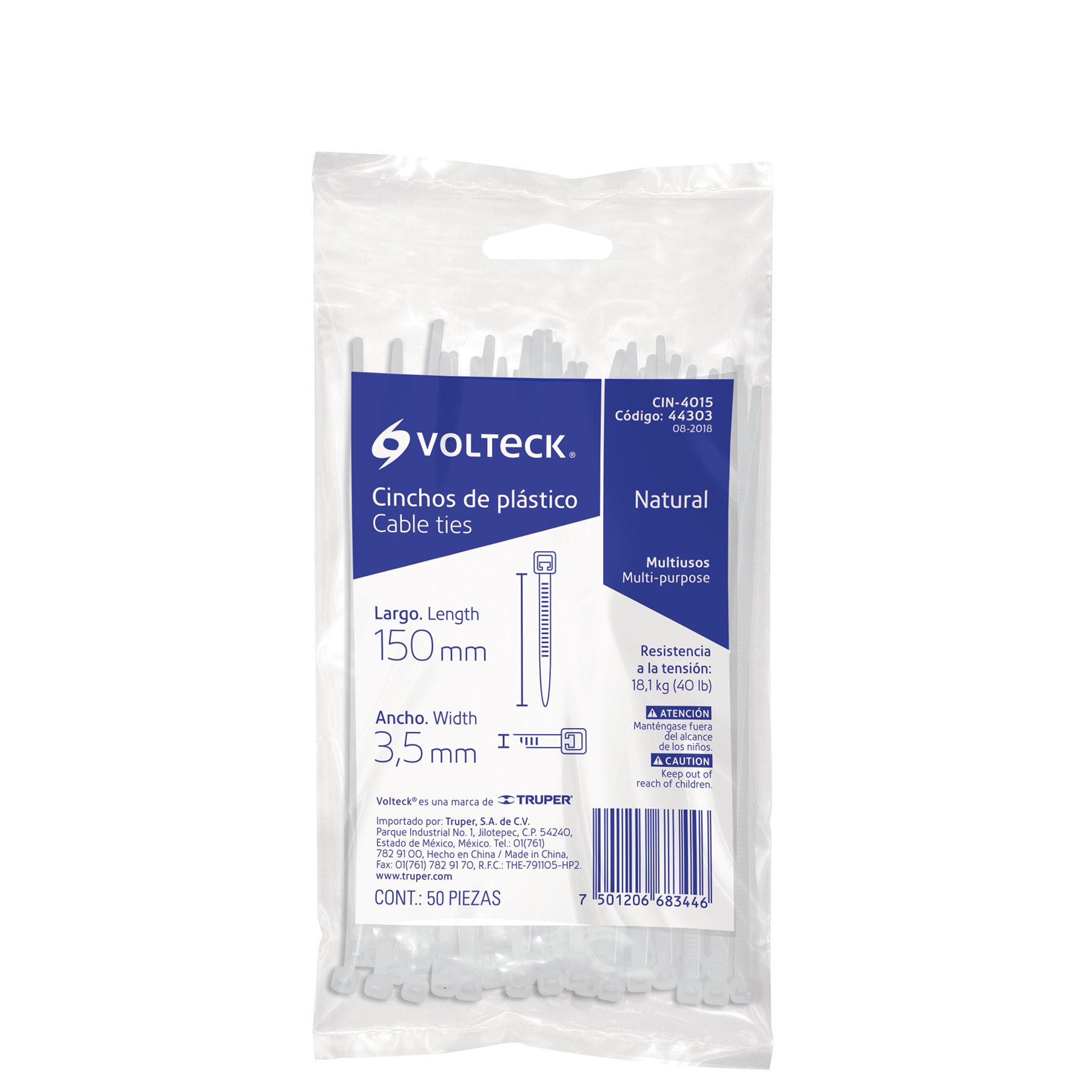 Cincho plástico, 40 lb, 15 cm, bolsa con 50 pzas