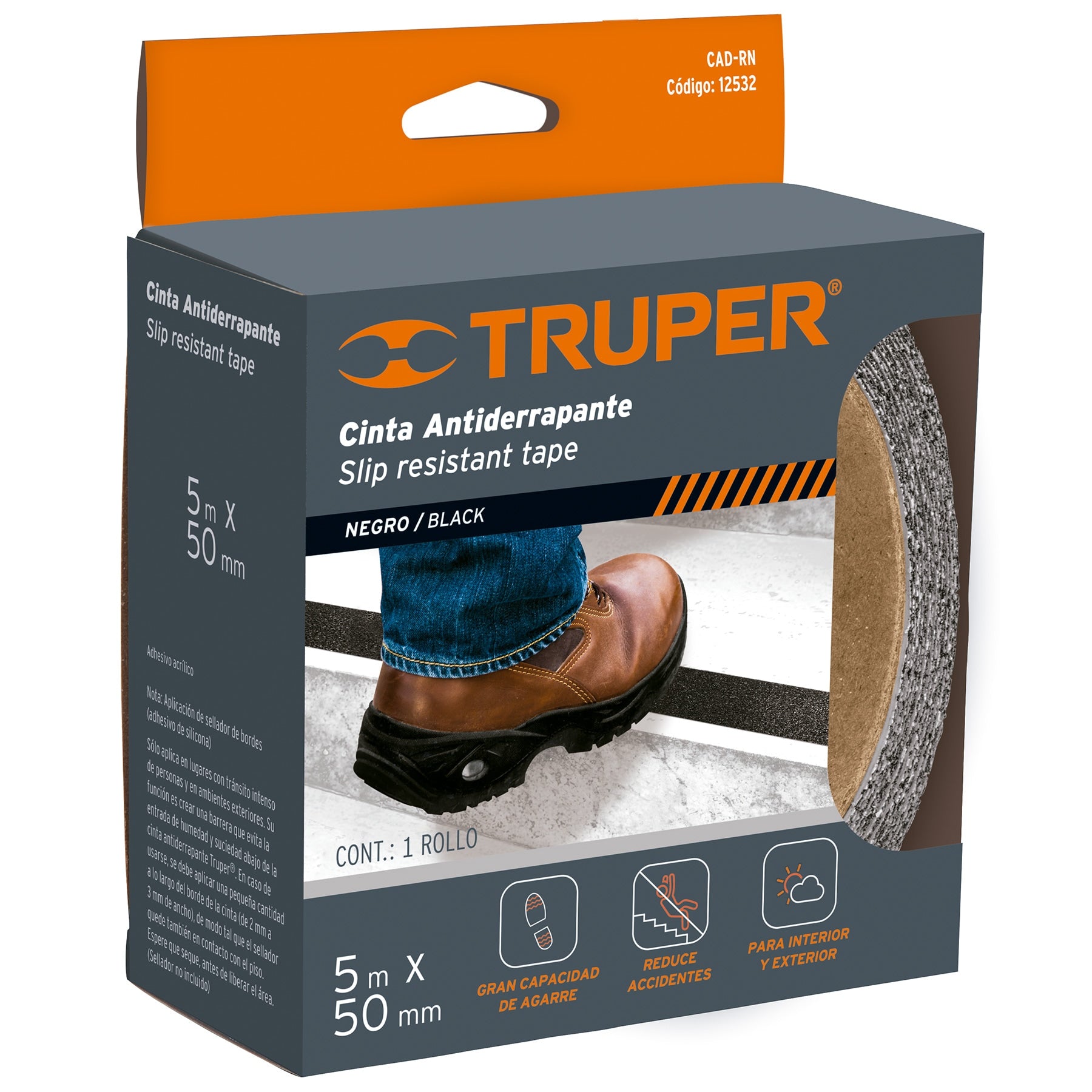 Cinta antiderrapante con abrasivo, rollo, 50 mm, negra