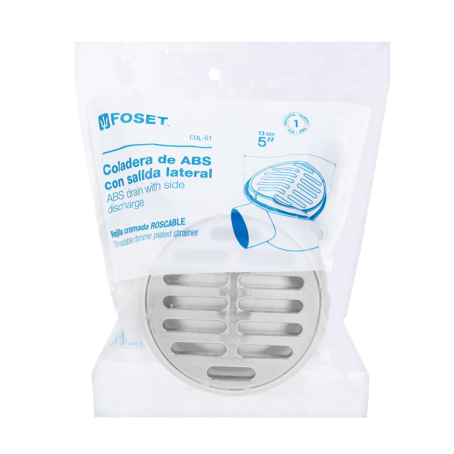 Coladera polipropileno 5", salida lateral 2", rejilla