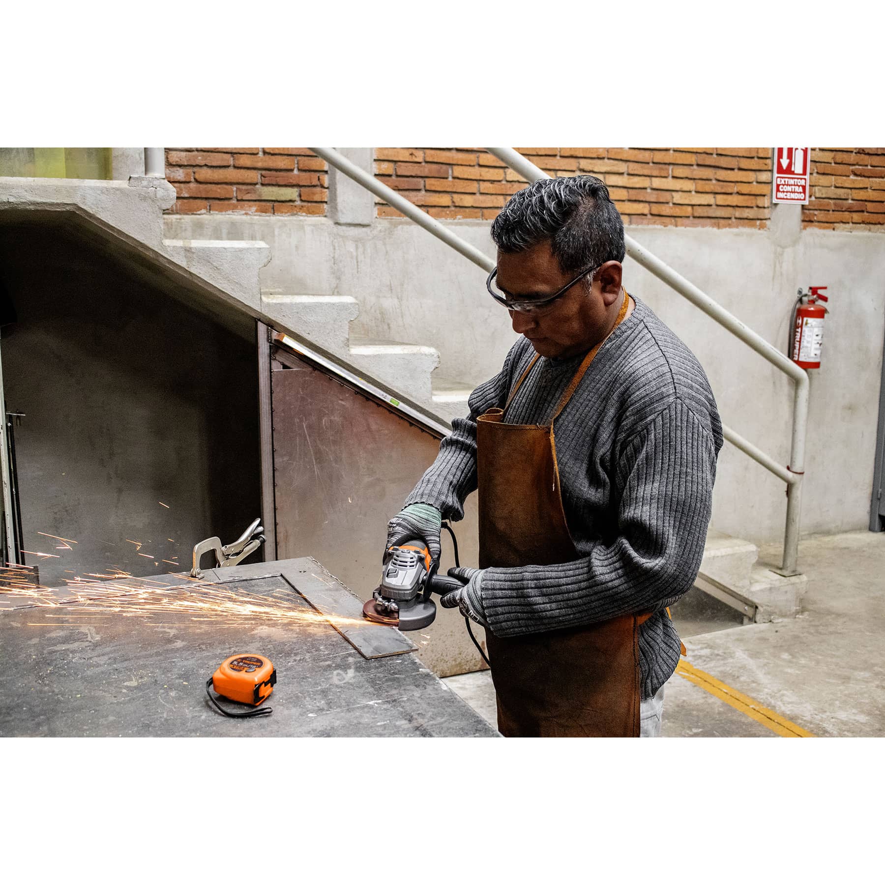 - Esmeriladora con mango de 3 posiciones, grip antiderrapante, cómodo botón de encendido, guarda de ajuste rápido y motor con balero de bolas que prolonga la vida útil de la máquina