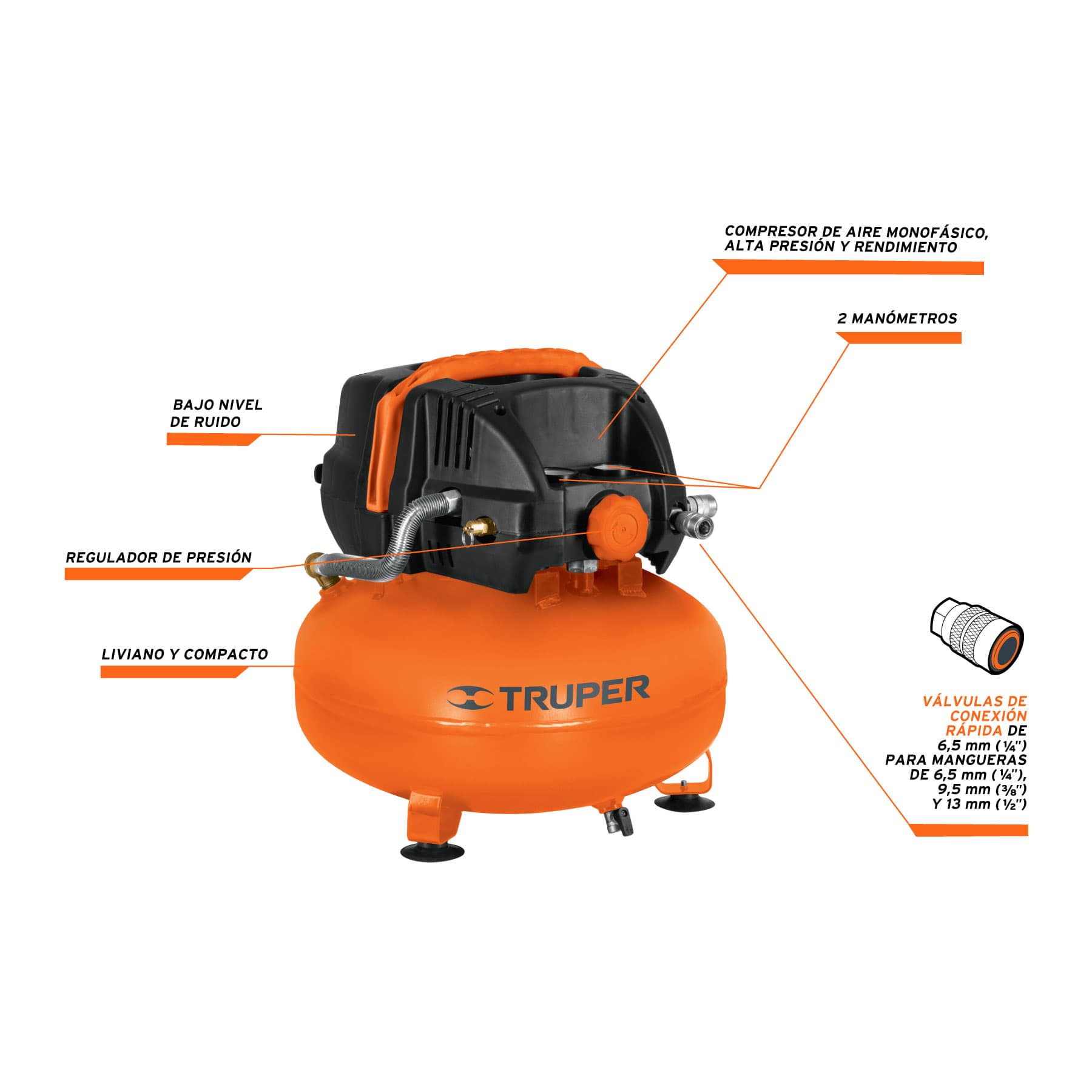 - Válvula de conexión rápida 1/4" para mangueras de 1/4", 3/8" y 1/2"
