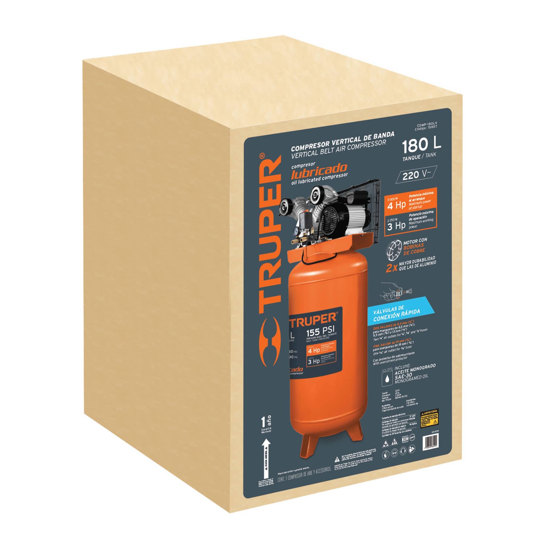 Compresor vertical 180 L, 4 HP (potencia máxima ), 220 V