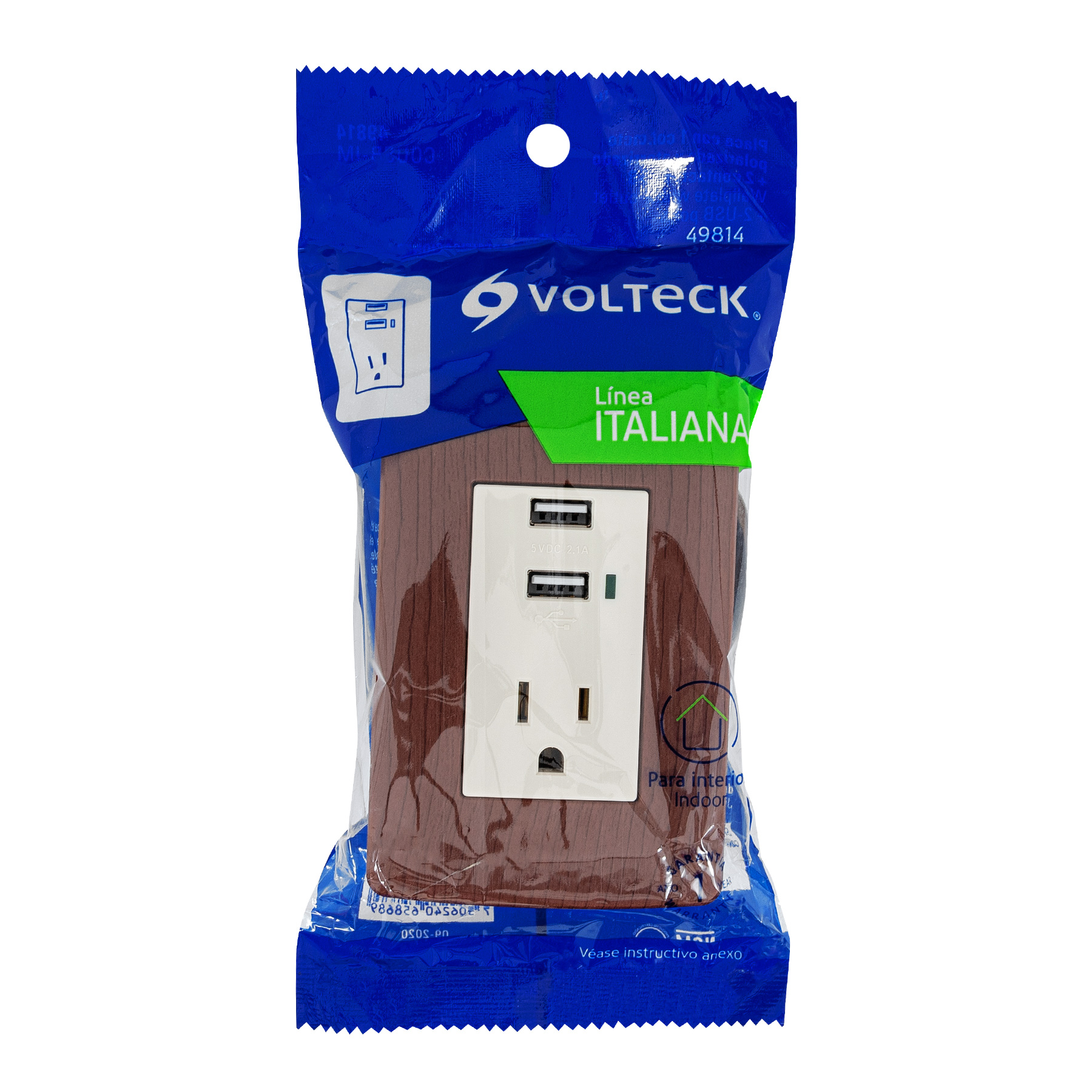 Contacto aterrizado + 2 puertos USB, madera, línea Italiana