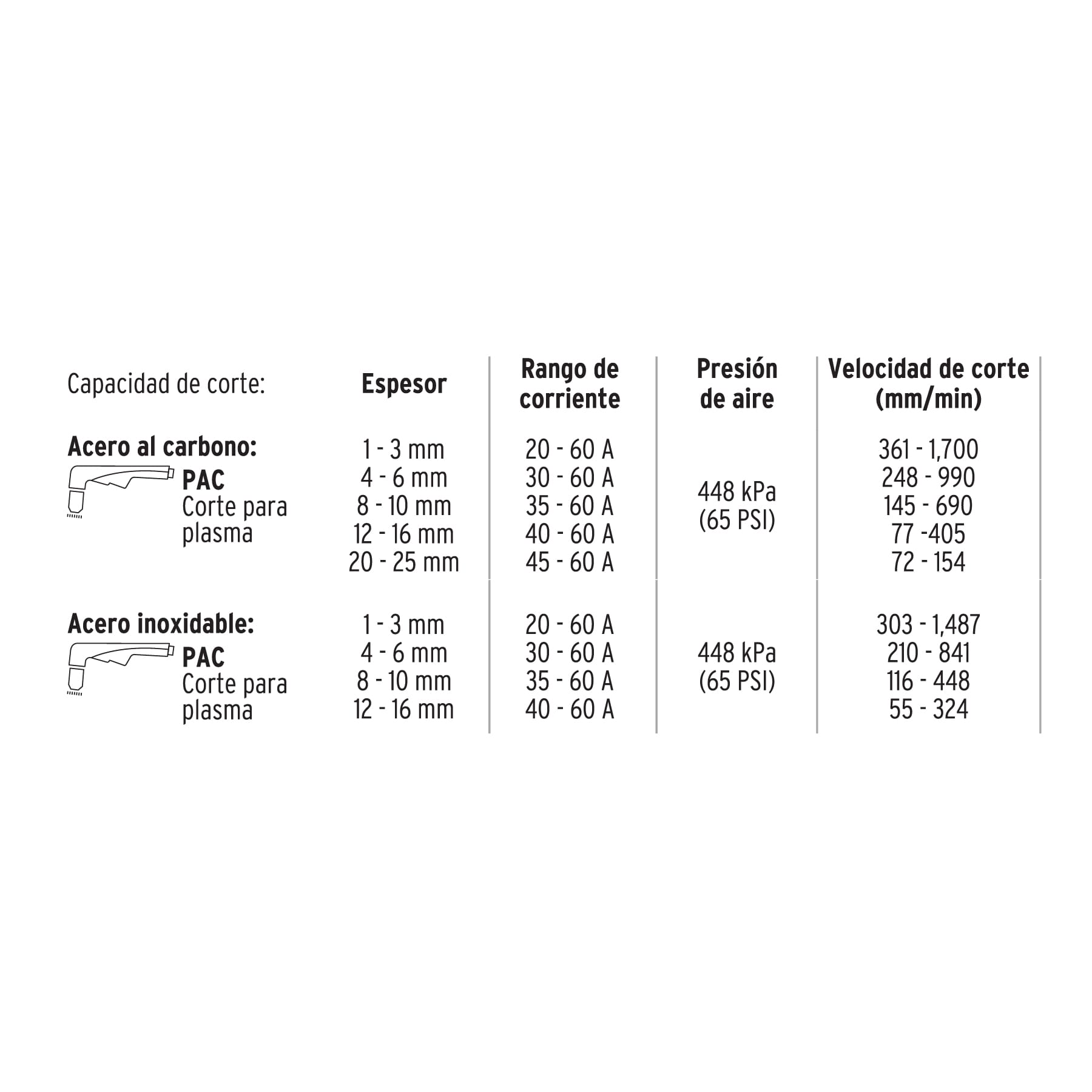 - Para cortes en acero al carbono, acero inoxidable, cobre y aluminio