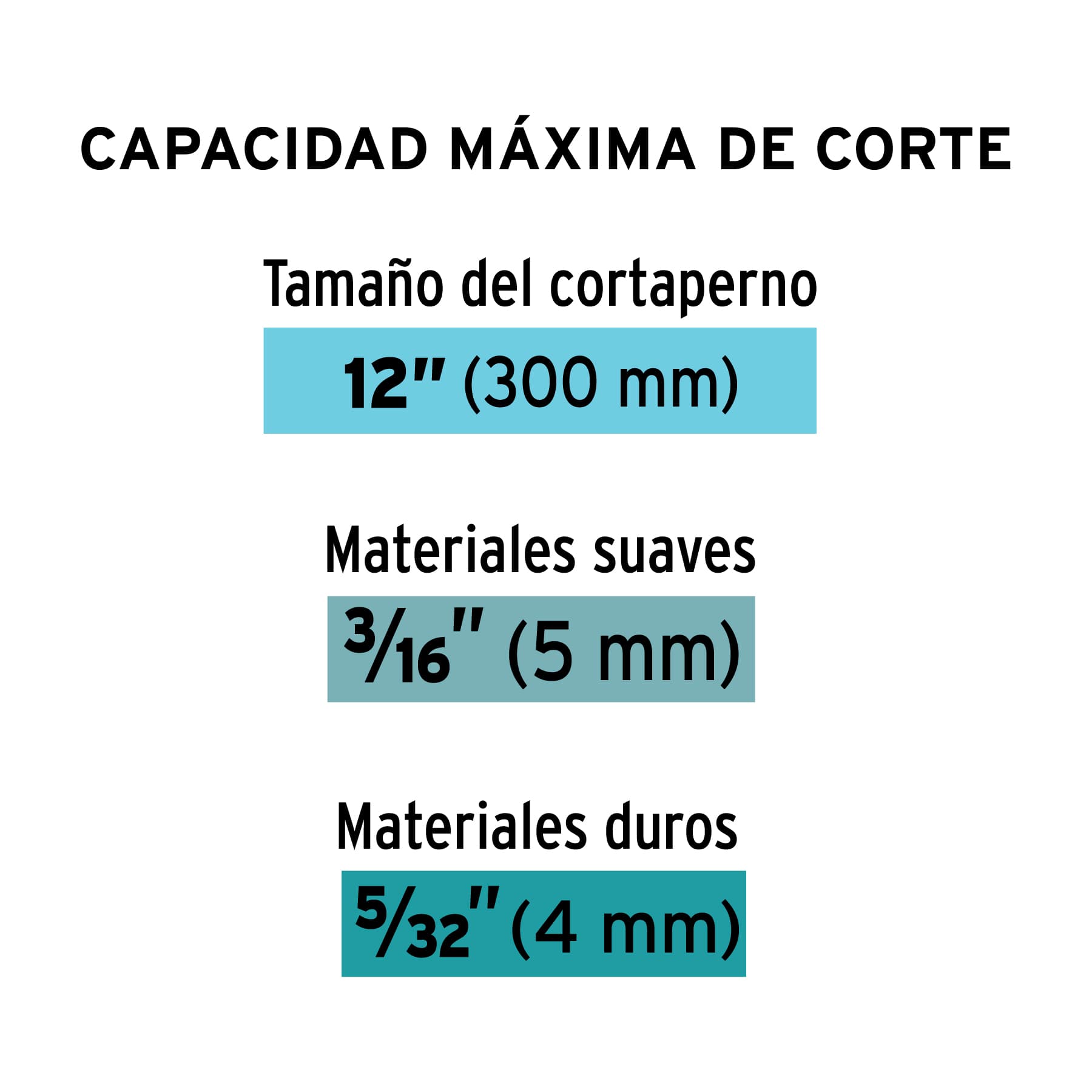 12830 | CP-12X | 12" (30 cm) | Materiales suaves 3/16" (4.7 mm), materiales duros 5/32" (4.0 mm) | 29/32" (23 mm) | 16 | 576 |