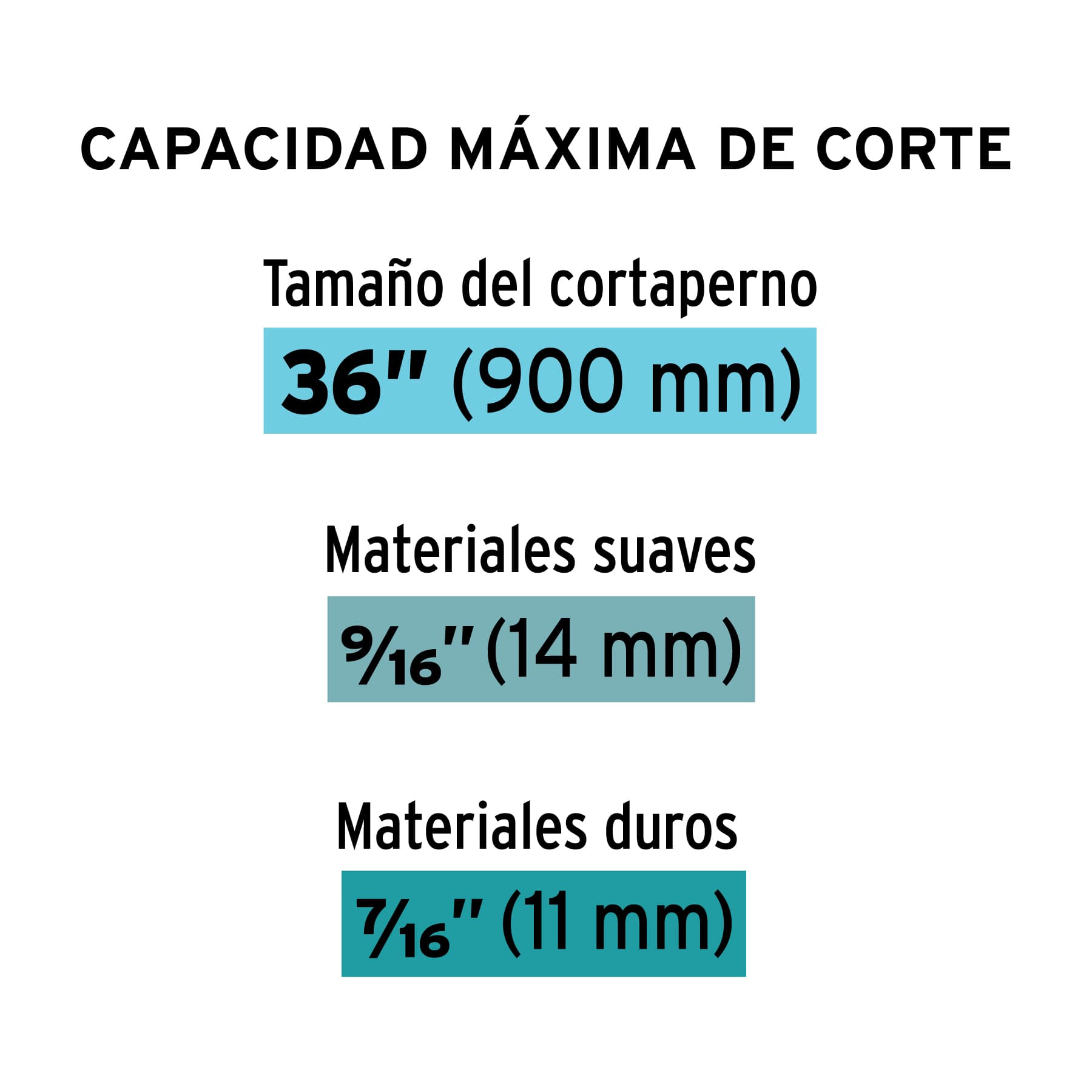 12835 | CP-36X | 36" (91 cm) | Materiales suaves 9/16" (14.2 mm), materiales duros 7/16" (11 mm) | 1 17/32" (39 mm) | 4 | 80 |