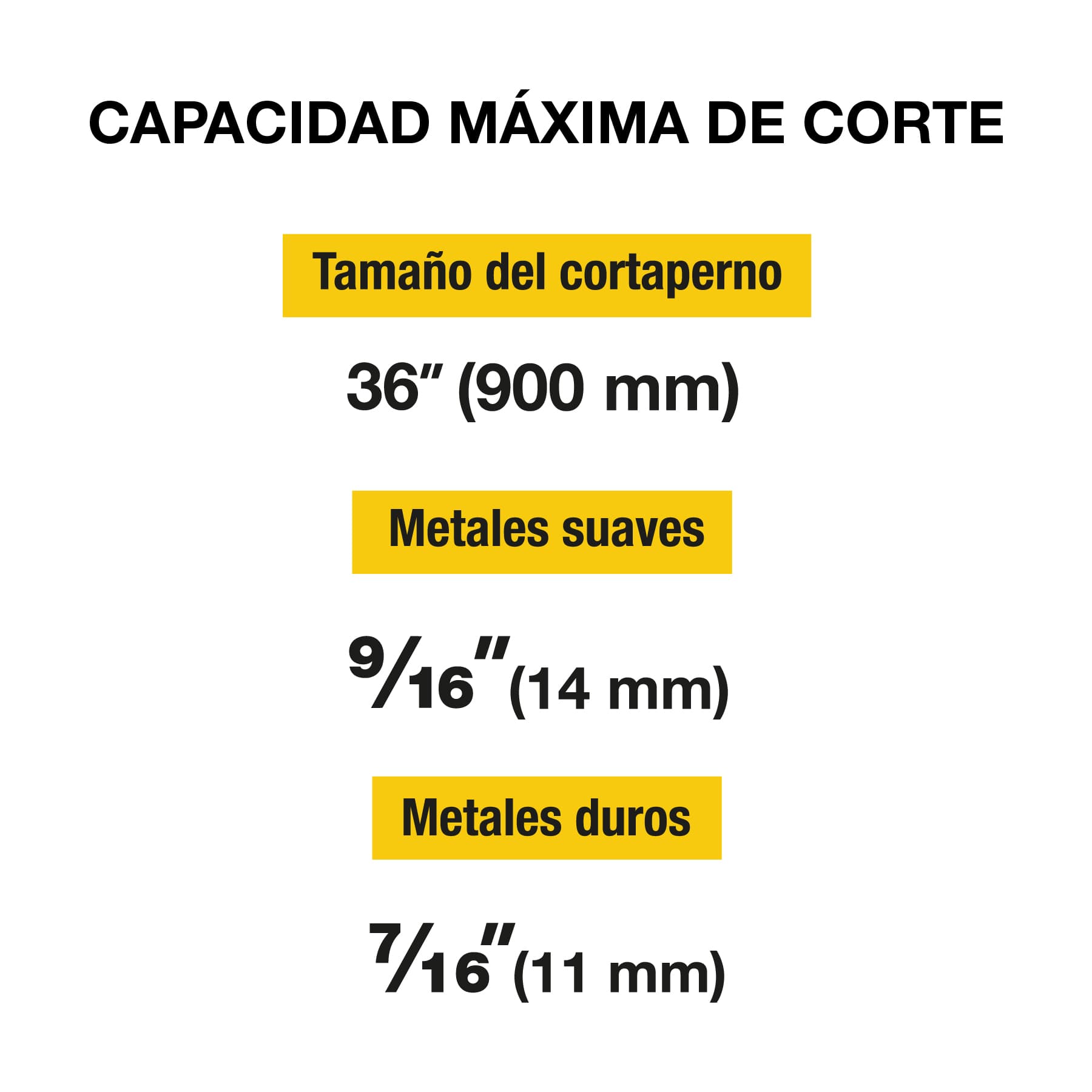 20949 | CP-36P | 36" (91 cm) | Materiales suaves 9/16" (14.2 mm), materiales duros 7/16" (11 mm) | 1 17/32" (39 mm) | 4 | 100 |
