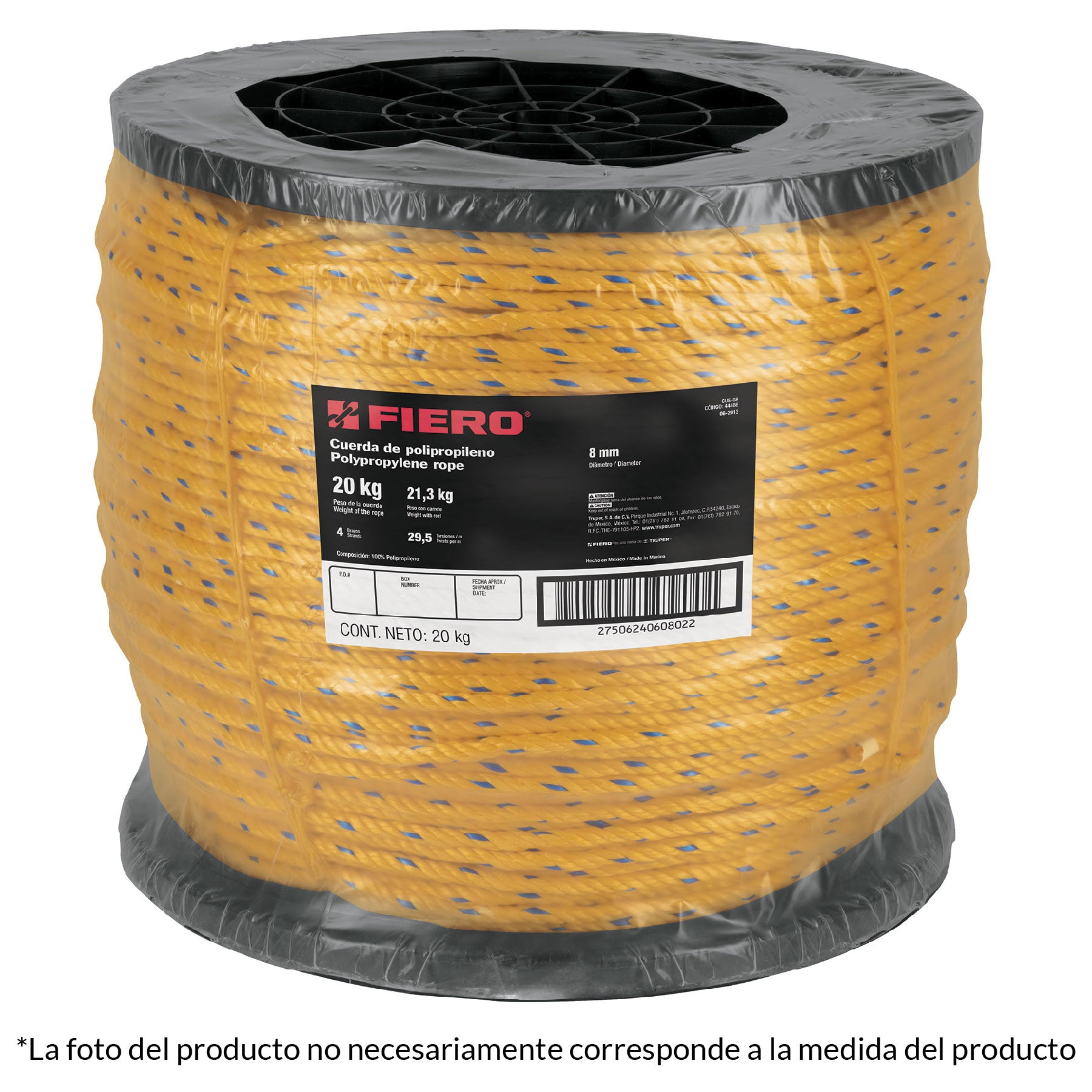 Cuerda torcida de polipropileno, amarilla, 6 mm x 20 kg