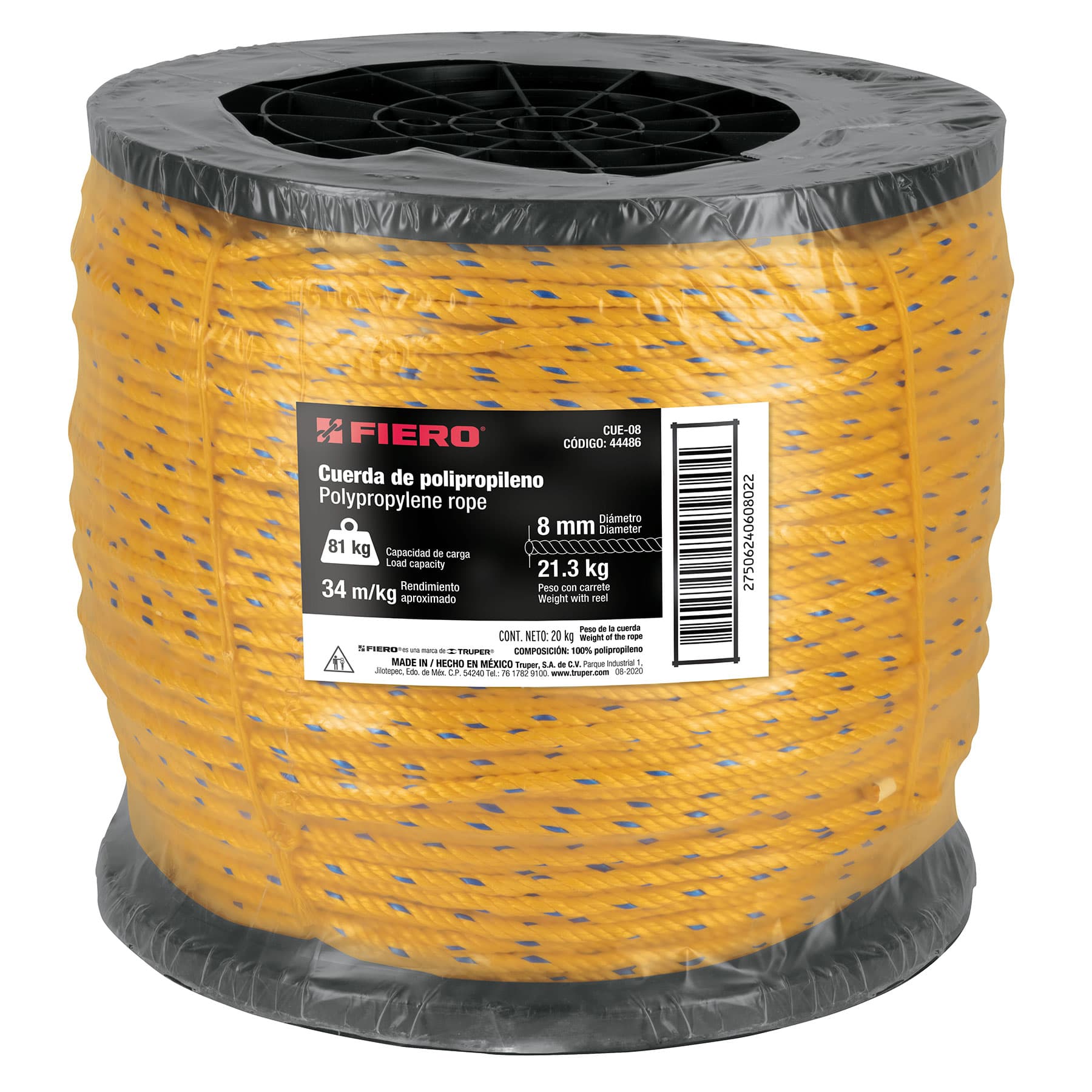 44486 | CUE-08 | 8 mm (5/16") | 680 m | 81 kg | 20 kg | 21.3 kg | 360 | 20 | 360 |
