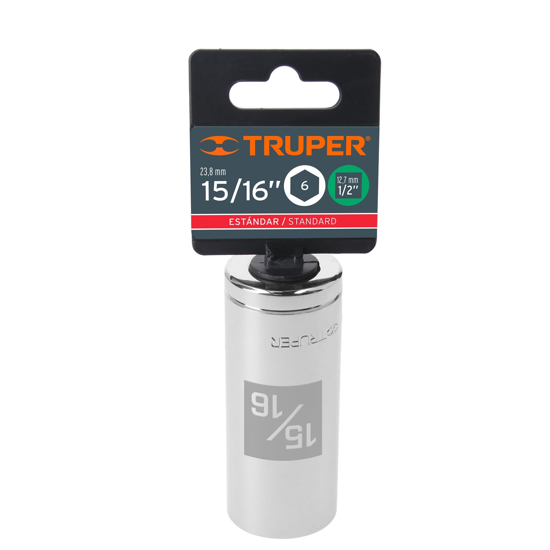 Dado de 6 puntas, largo, cuadro 1/2" de 15/16"