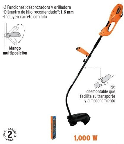 Desbrozadora eléctrica 1000 W mango "D", 14" de corte