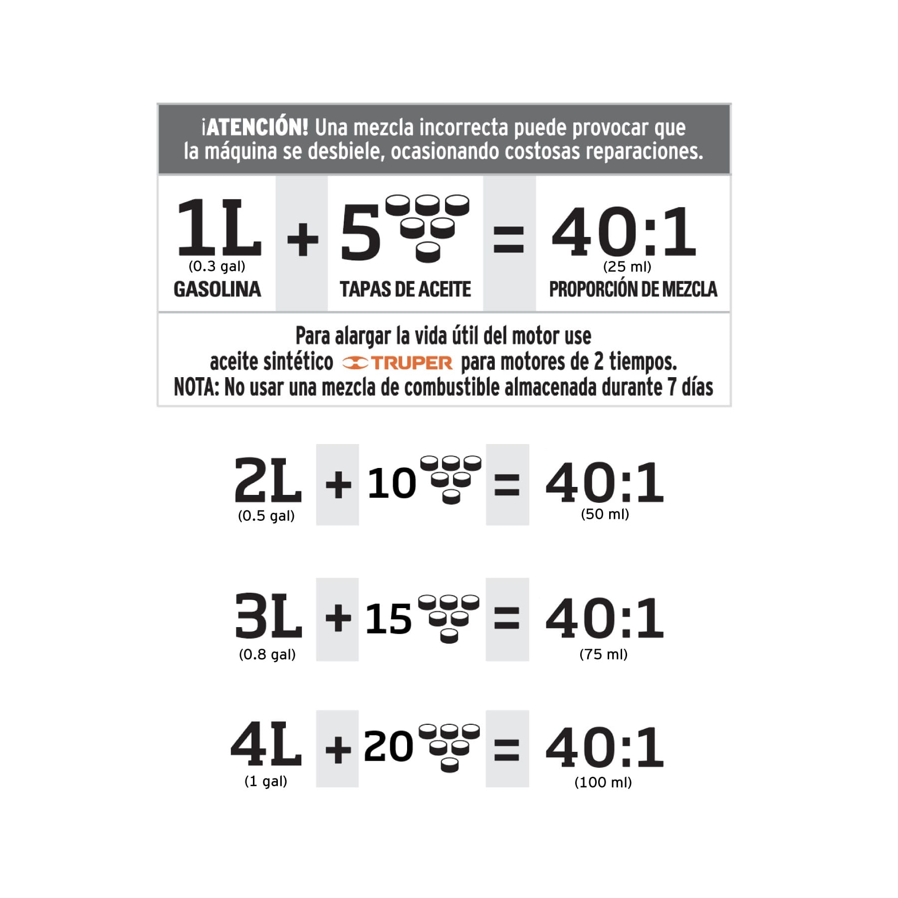 | Mezcla de gasolina | 40:1 |