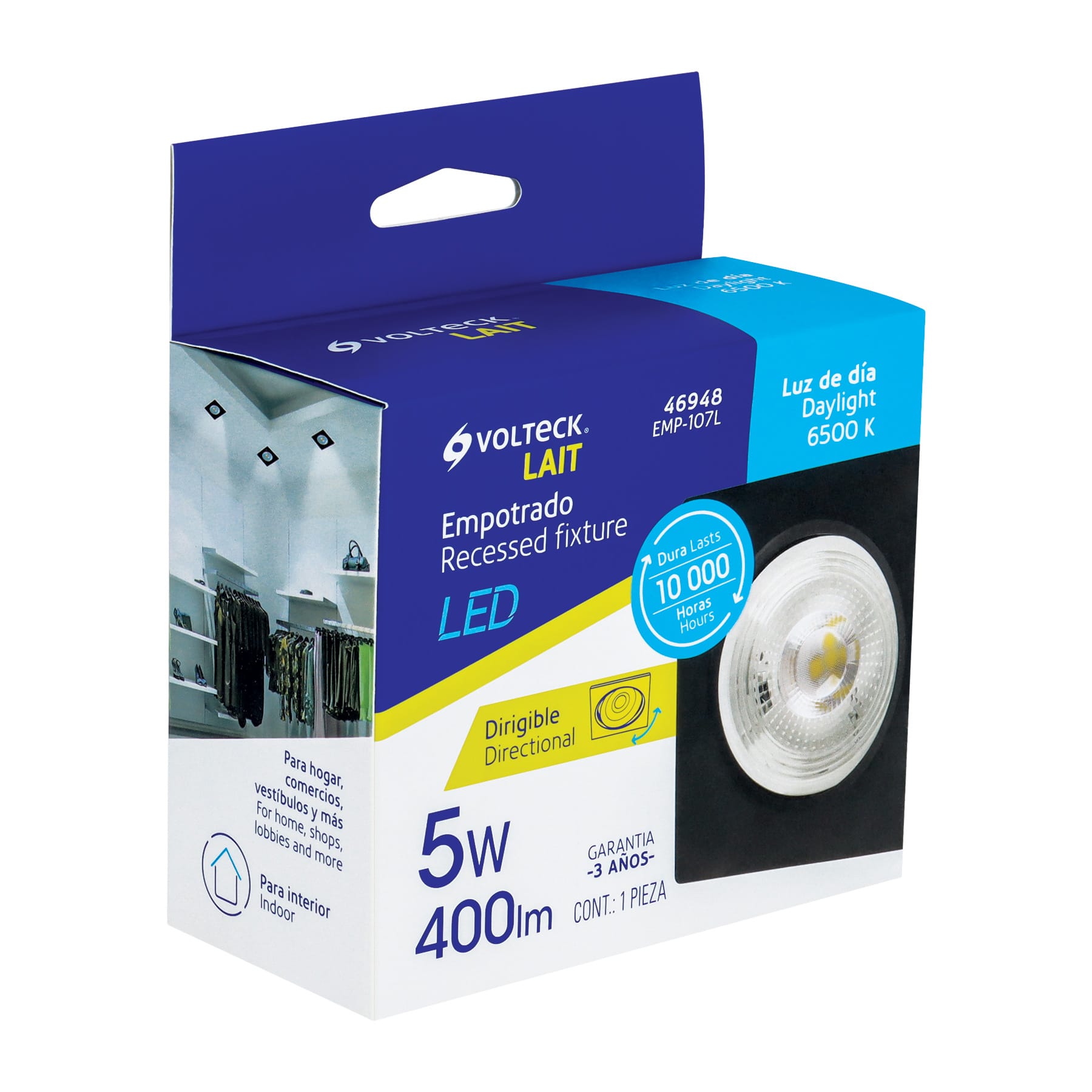 Luminario empotrable cuadrado de LED, dirigible 5 W, negro