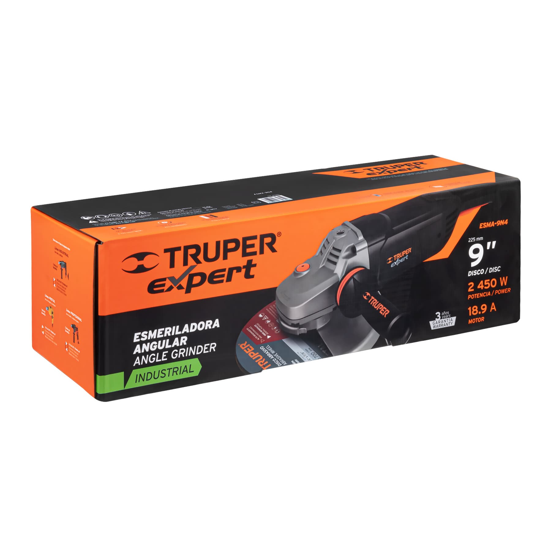 Esmeriladora angular industrial 9", 2,450 W