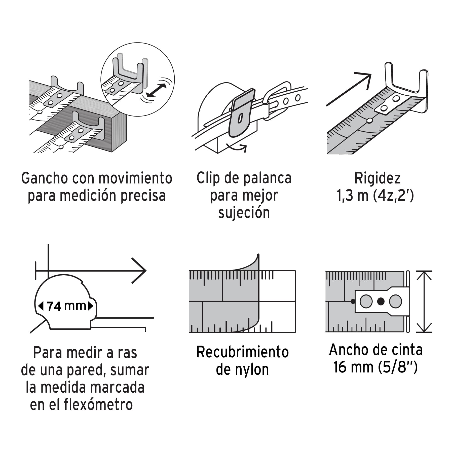 - Ganchos dobles que facilitan la medición por ambos lados (excepto FA-3M)