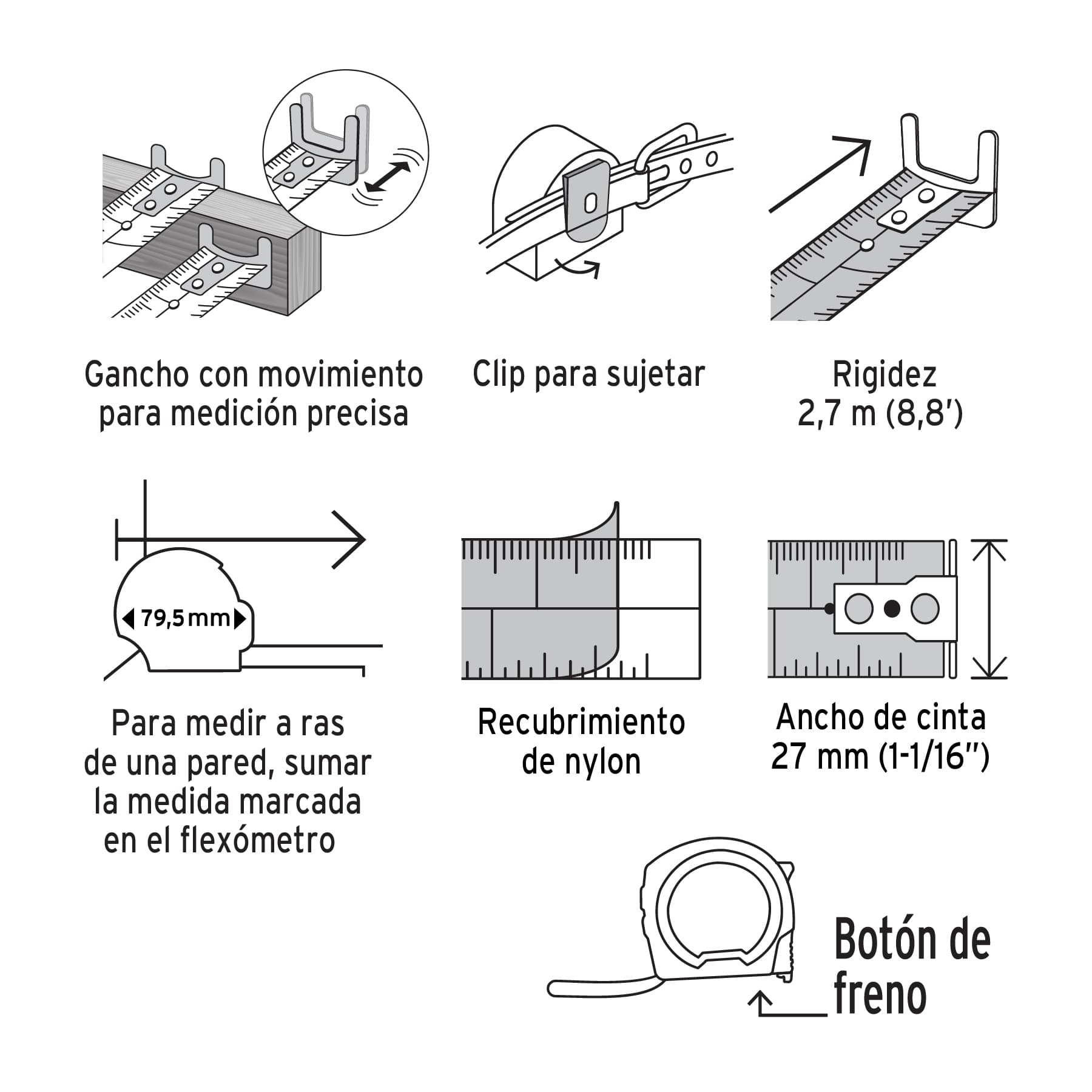 Flexómetro Cinta Negra, 8 m, cinta 27 mm