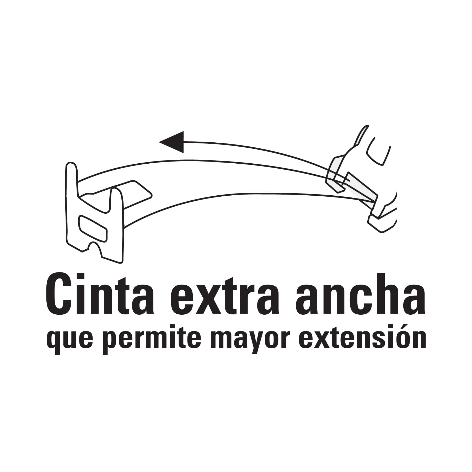 - Cintas extra anchas que permiten mayor extensión, impresas por ambos lados, fabricadas en acero negro resistente a la corrosión