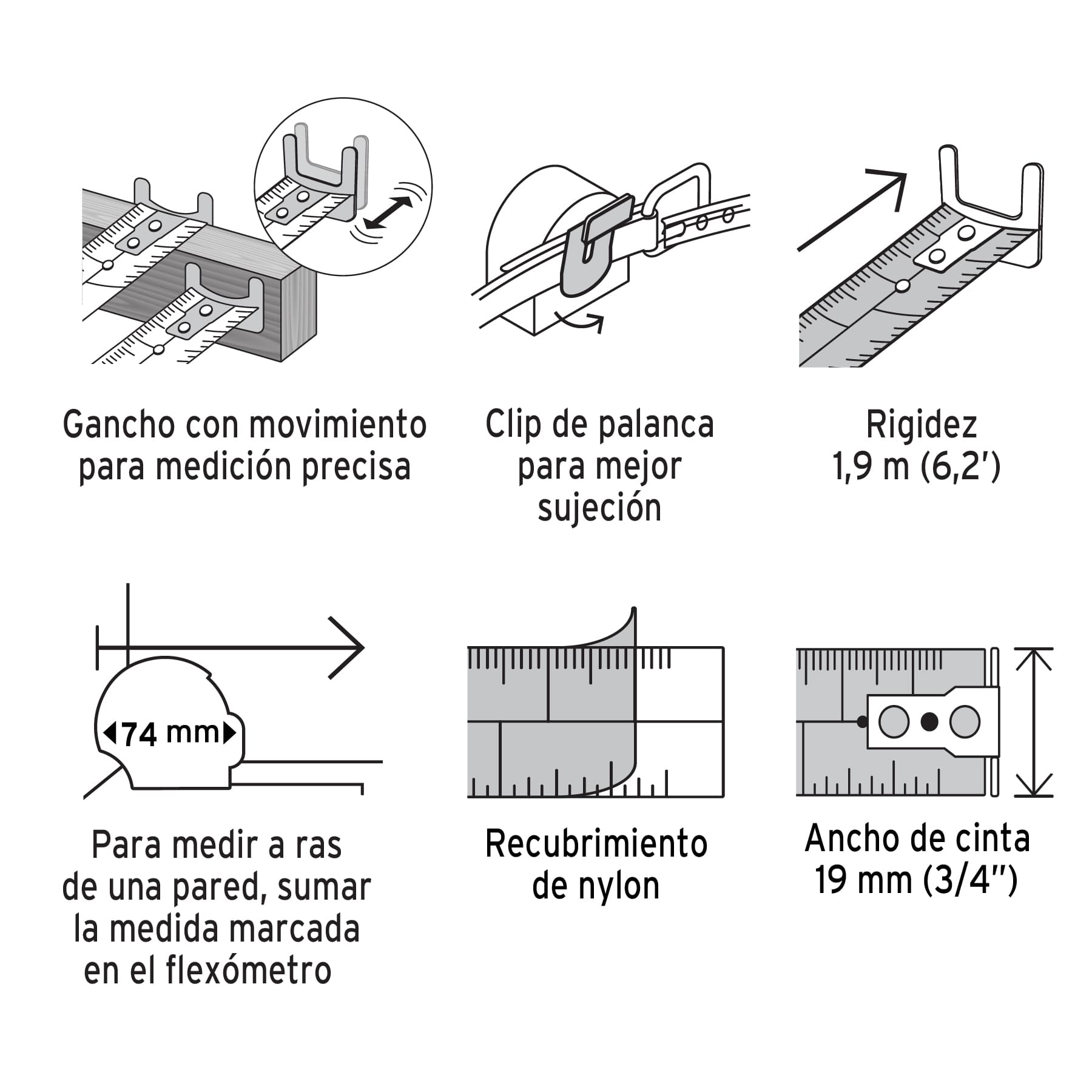 - Ganchos dobles que facilitan la medición por ambos lados (excepto FH-3M)