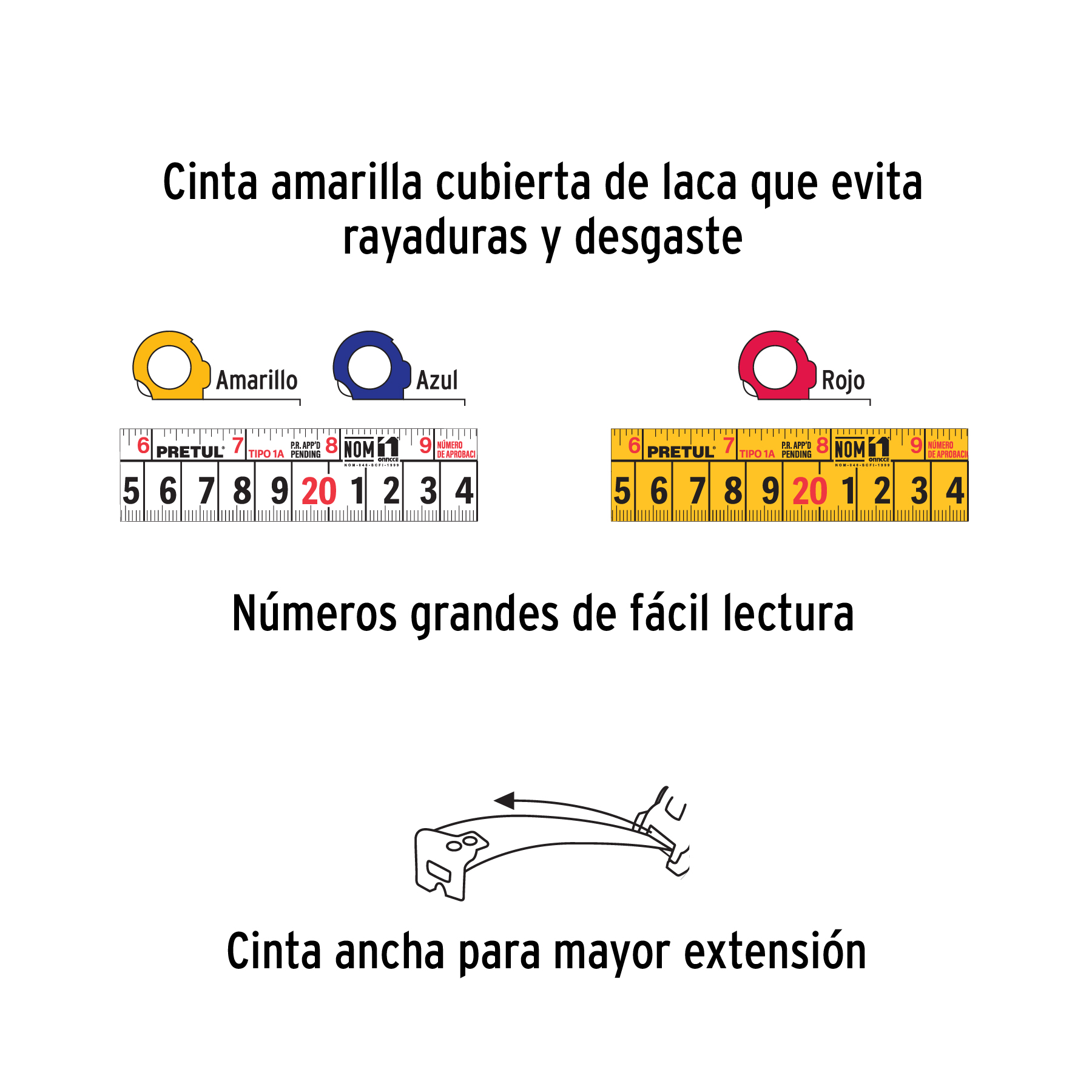 Flexómetros 3 m, cinta 13 mm en display box, 24 pzas, Pretul