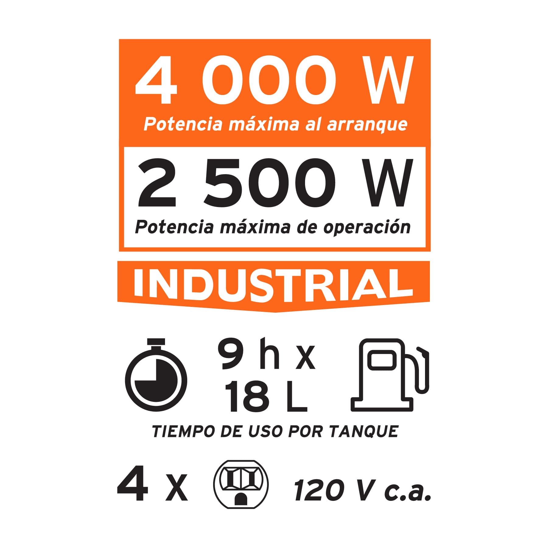 - Motor OHV (Over Head Valve) a 4 tiempos de alto desempeño, no requiere mezcla de aceite y gasolina