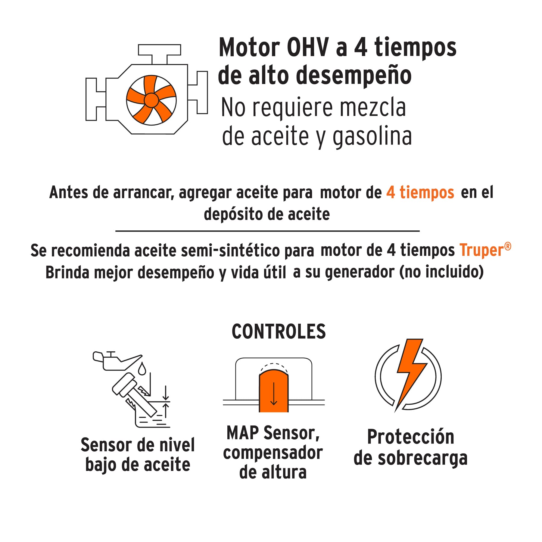 - Se recomienda aceite semi-sintético para motor de 4 tiempos Truper®