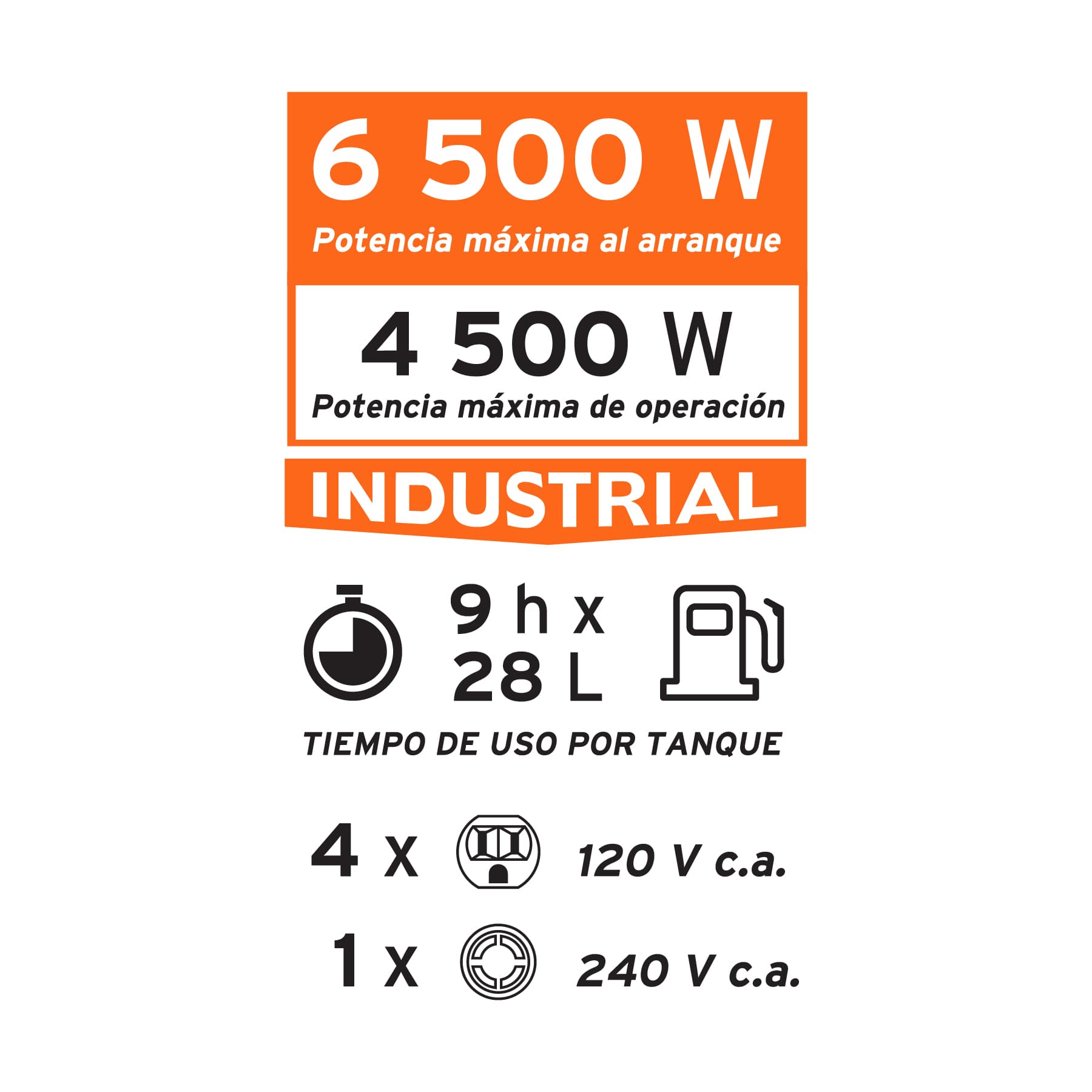 Generador eléctrico portátil con motor a gasolina, 6,500W