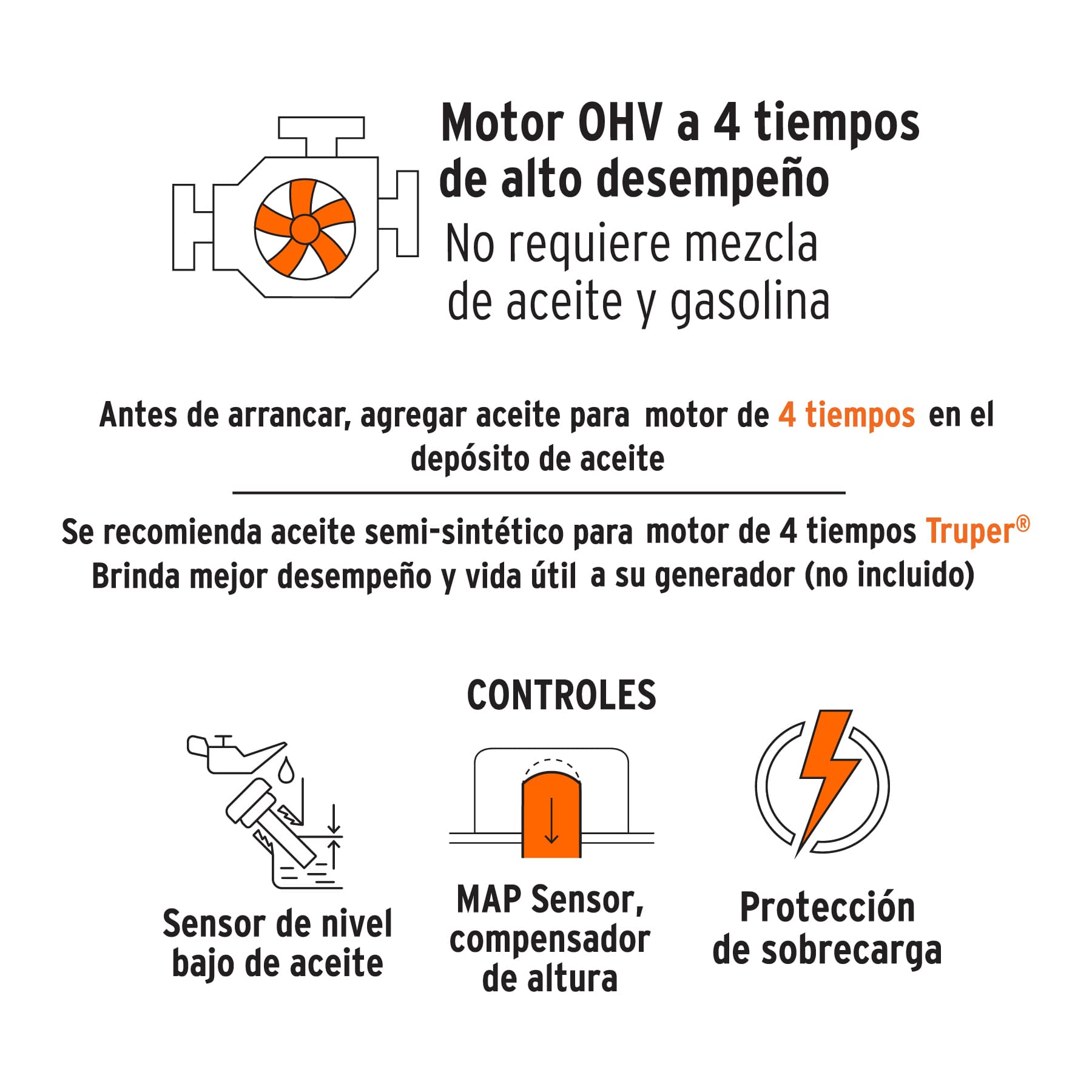 - Se recomienda aceite semi-sintético para motor de 4 tiempos Truper®
