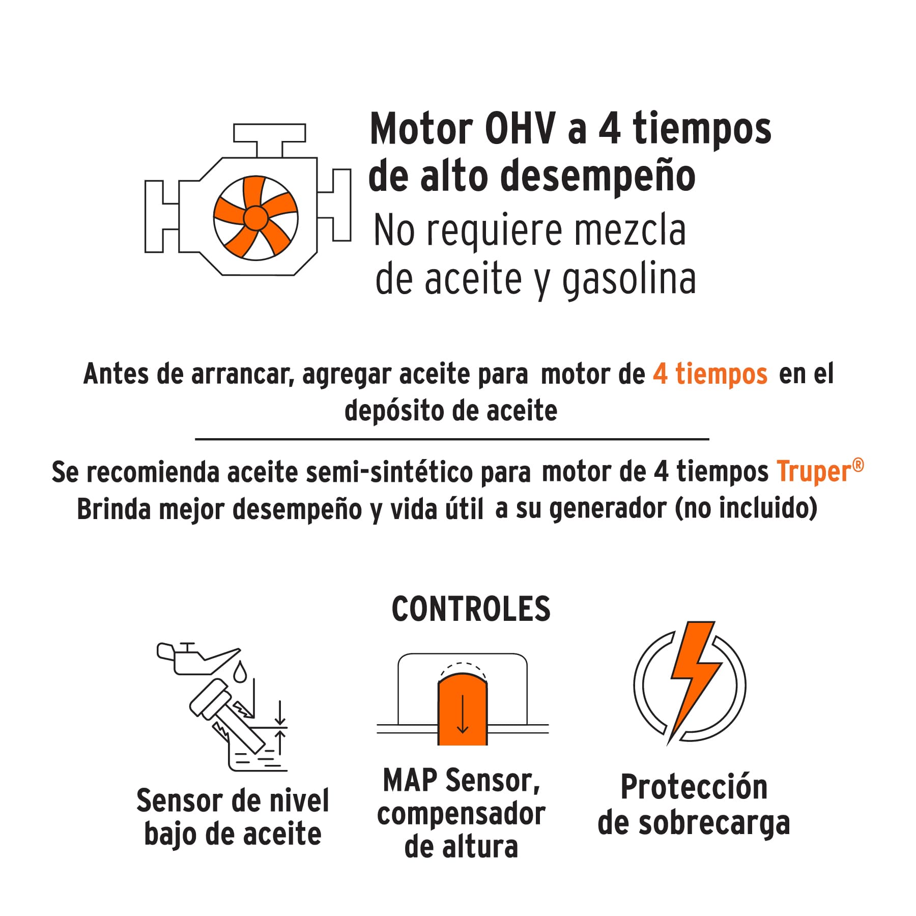 - Se recomienda aceite semi-sintético para motor de 4 tiempos Truper®