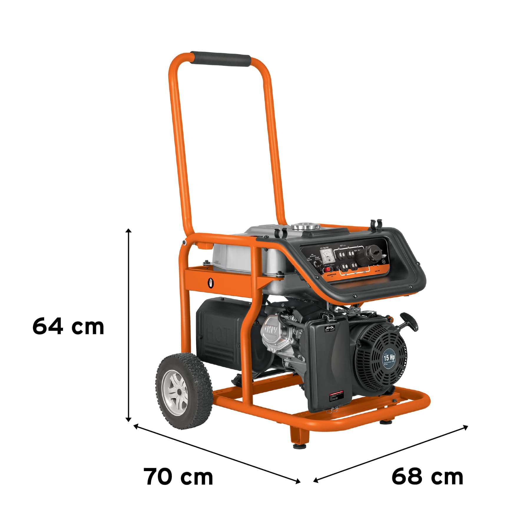 Dimensiones (no incluye manubrio) | Base 62 cm x Alto 64 cm x Fondo 70 cm |