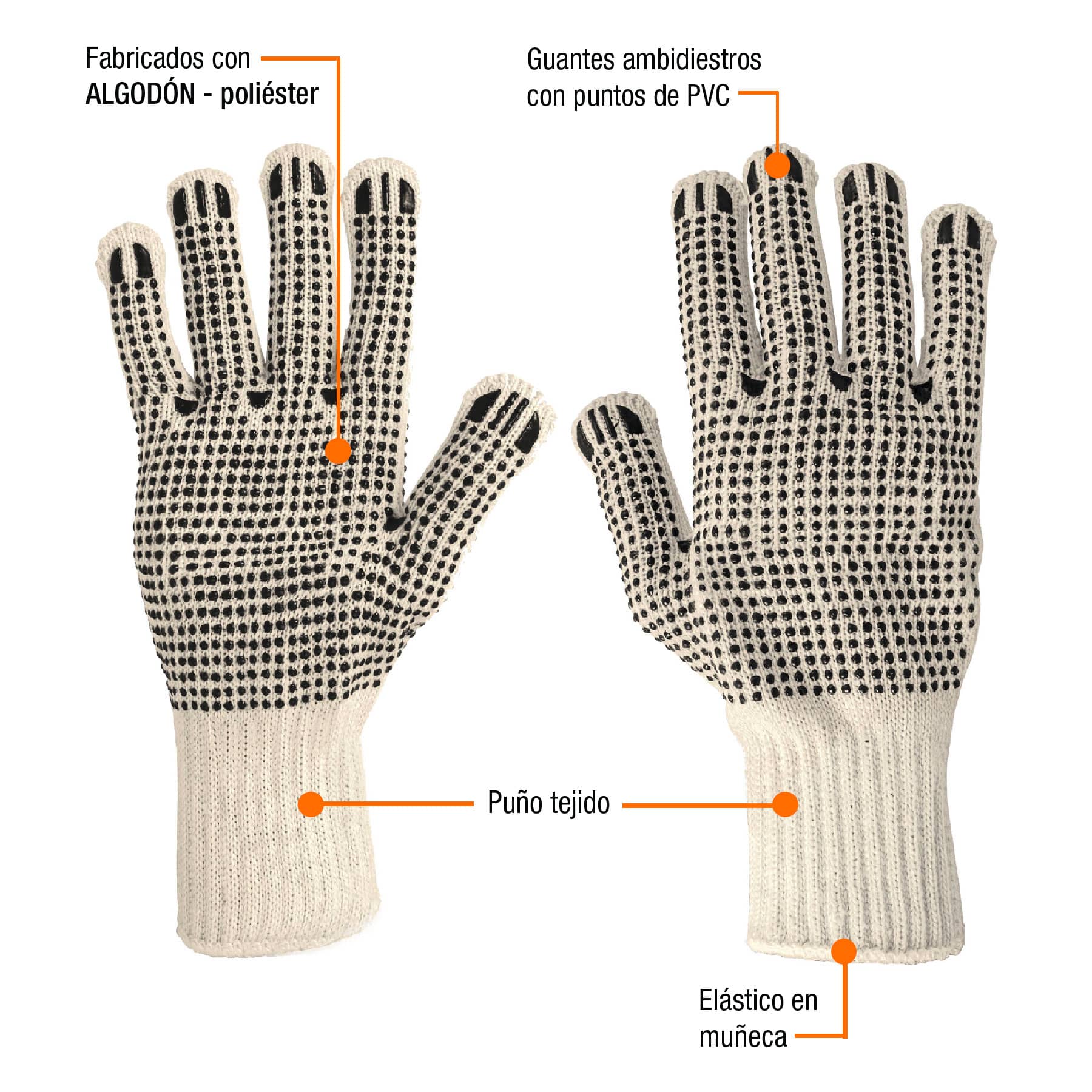 Guantes de algodón con puntos de PVC en palma y dorso, Pretul
