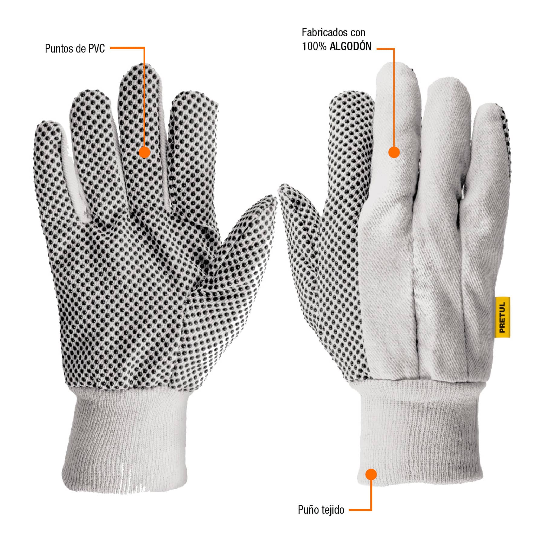 Guantes de algodón con puntos PVC en palma, unitalla, Pretul