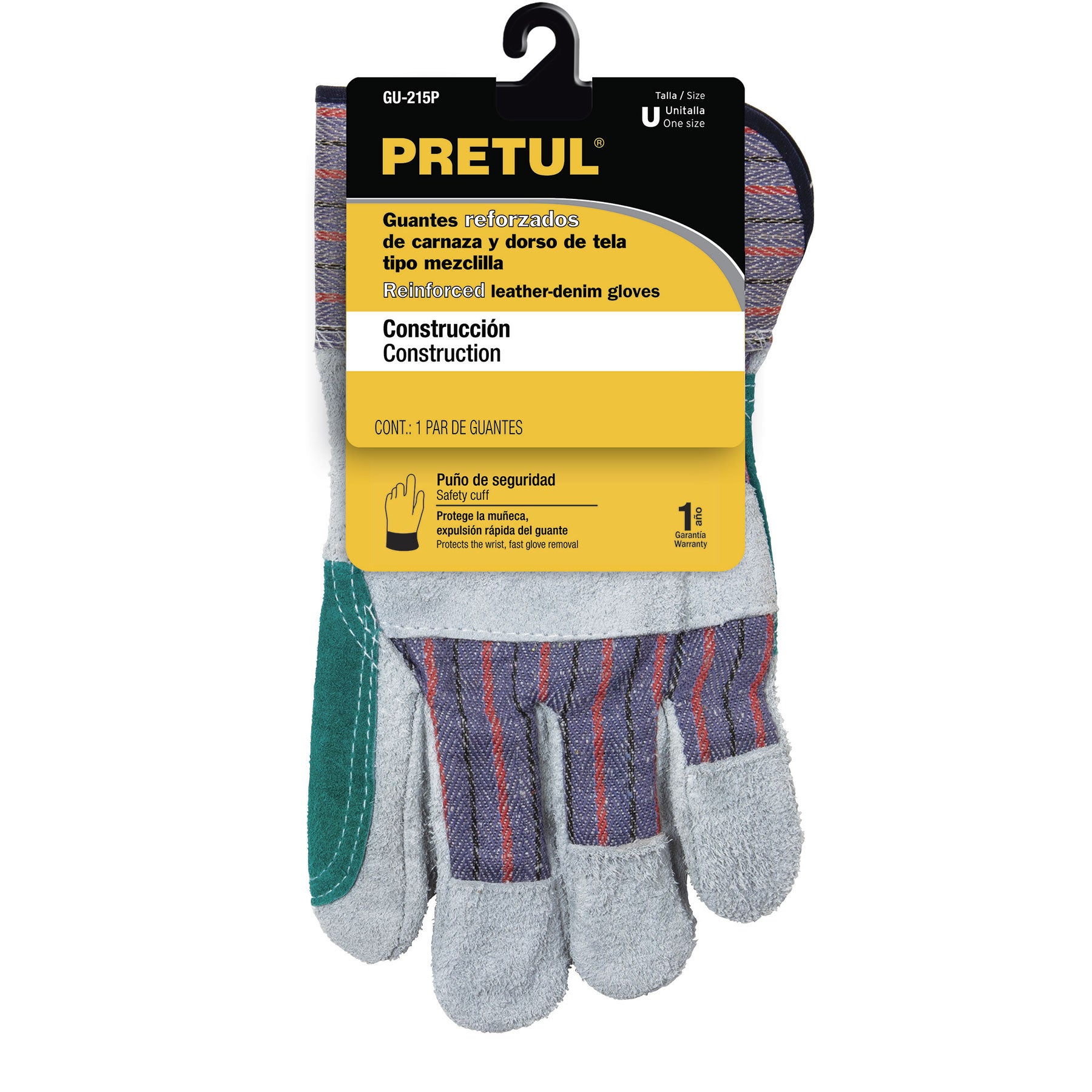 Guantes de carnaza y loneta con refuerzo, unitalla, Pretul