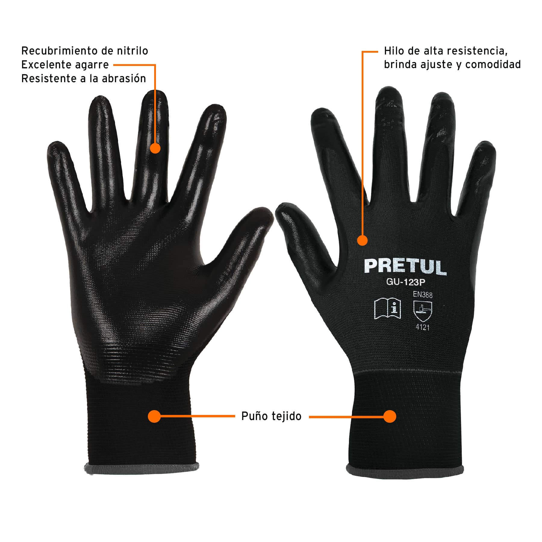 Guantes de nylon recubiertos de nitrilo, grandes, Pretul