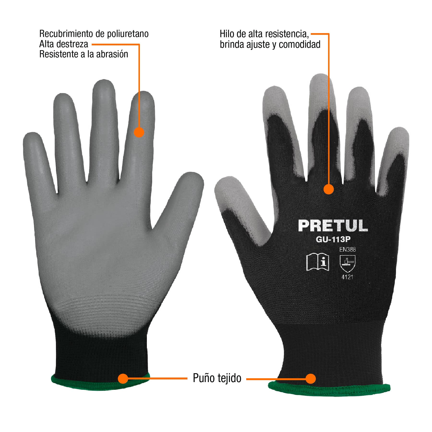 Guantes de nylon recubiertos de poliuretano, grandes, Pretul