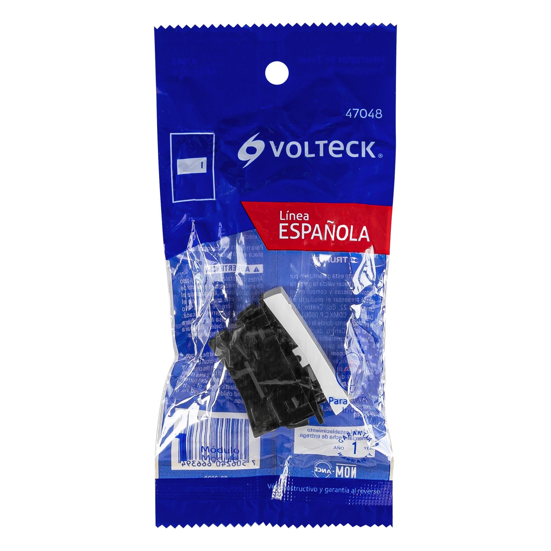 Interruptor de 3 vías, 1 módulo, línea Española, color blanco