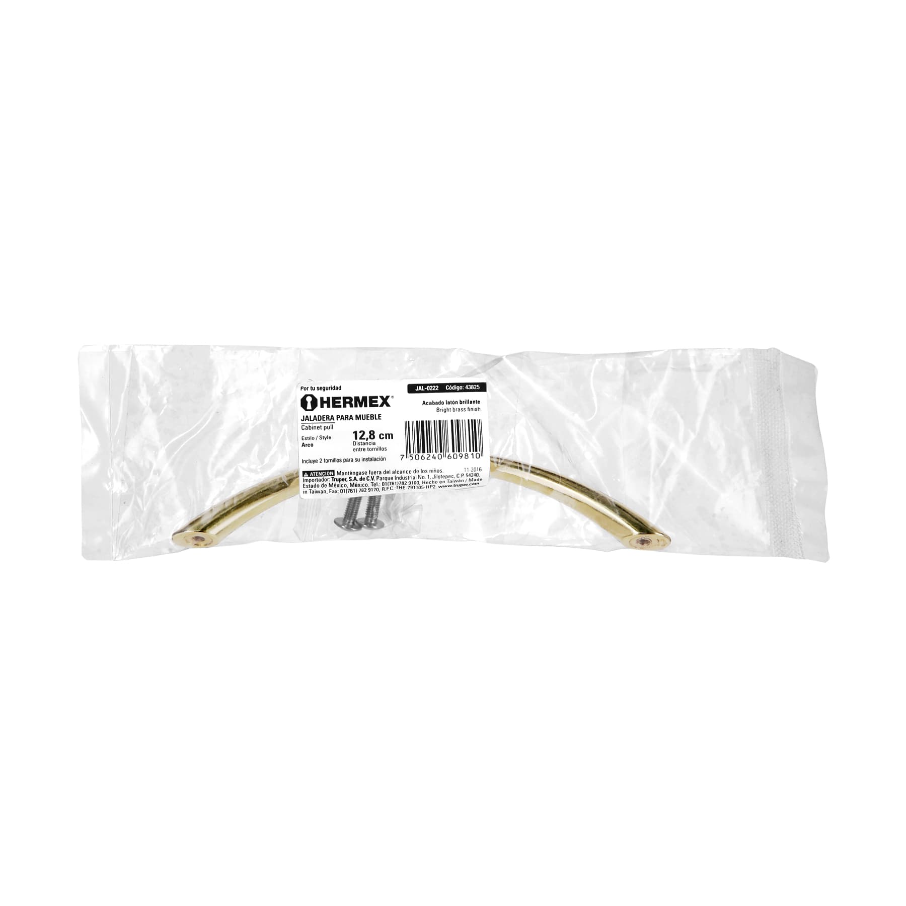 Jaladera, latón brillante, estilo Arco, 128 mm