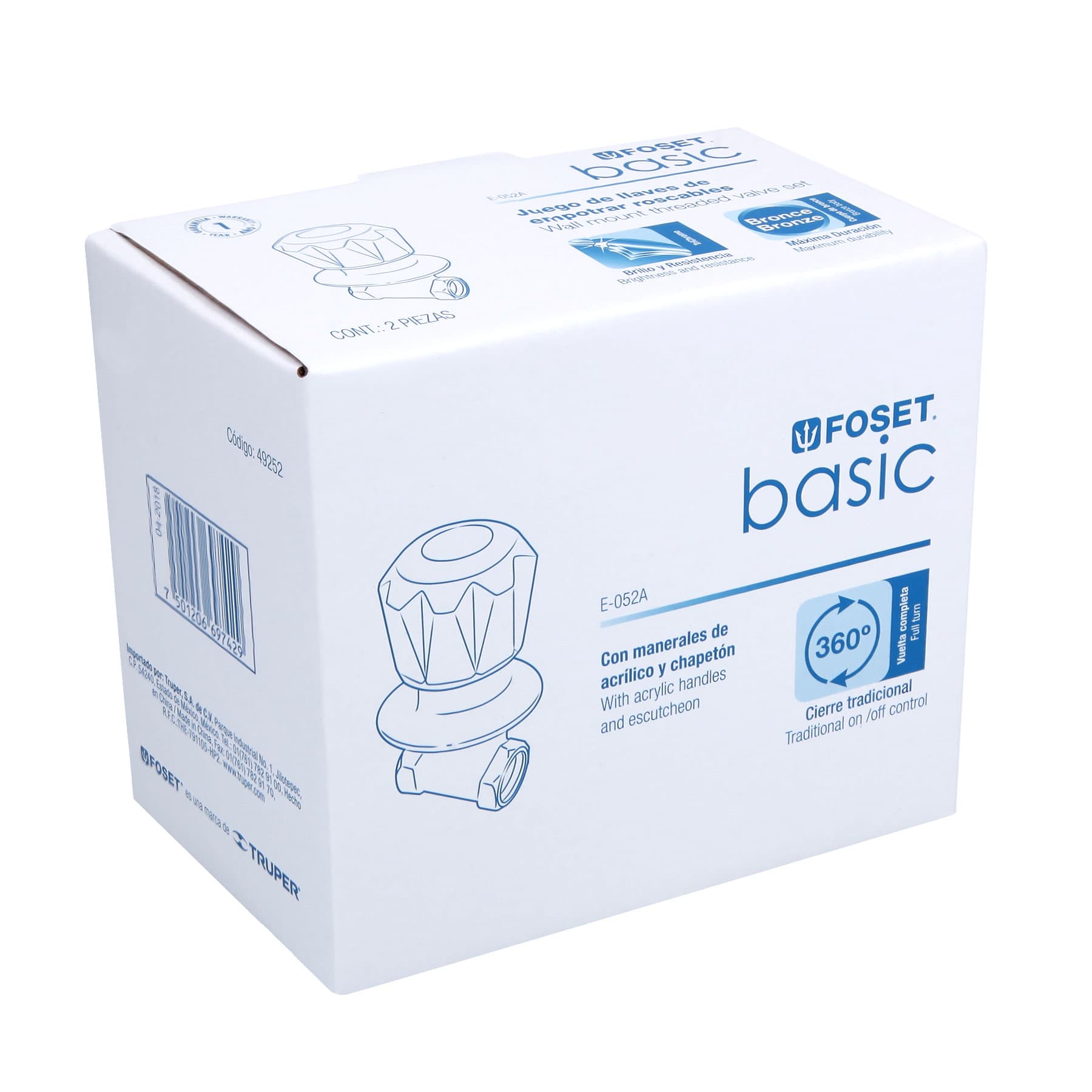 Juego 2 llaves empotrar, regadera, roscables, acrílico, Basic