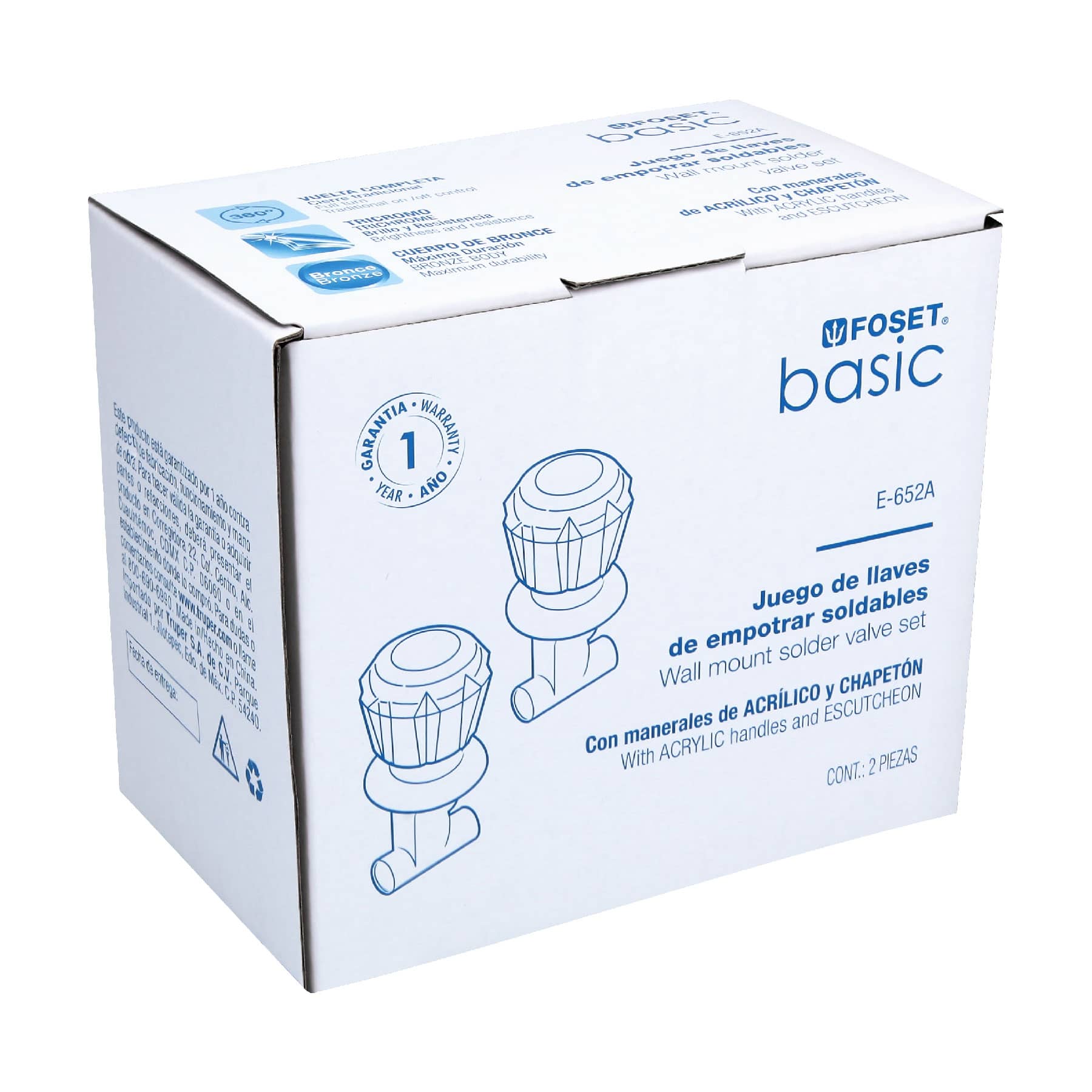 Juego 2 llaves empotrar, regadera, soldables, acrílico, Basic