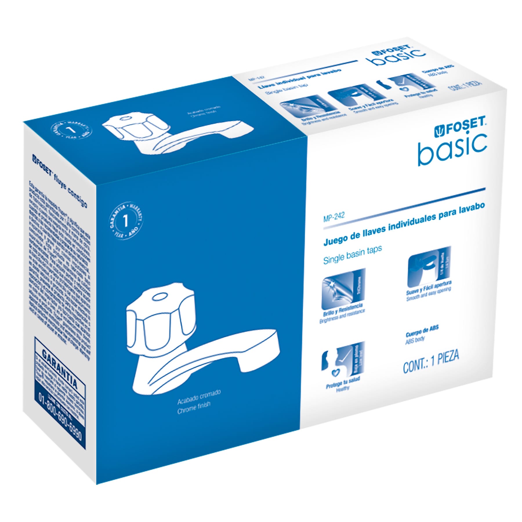 Juego 2 llaves para lavabo, ABS, manerales hexagonal, Basic