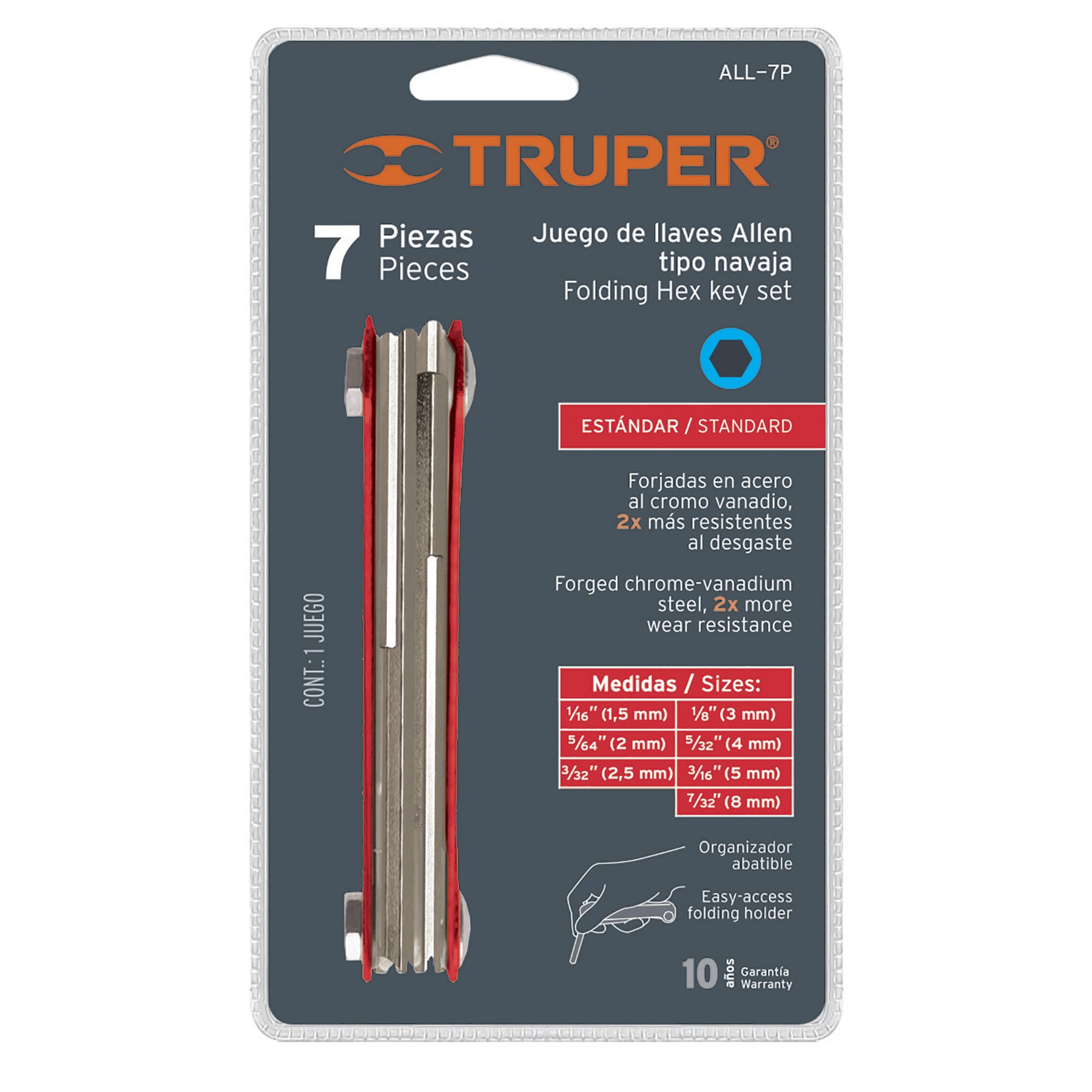 Juego 7 llaves Allen standard tipo navaja, cuerpo de lámina