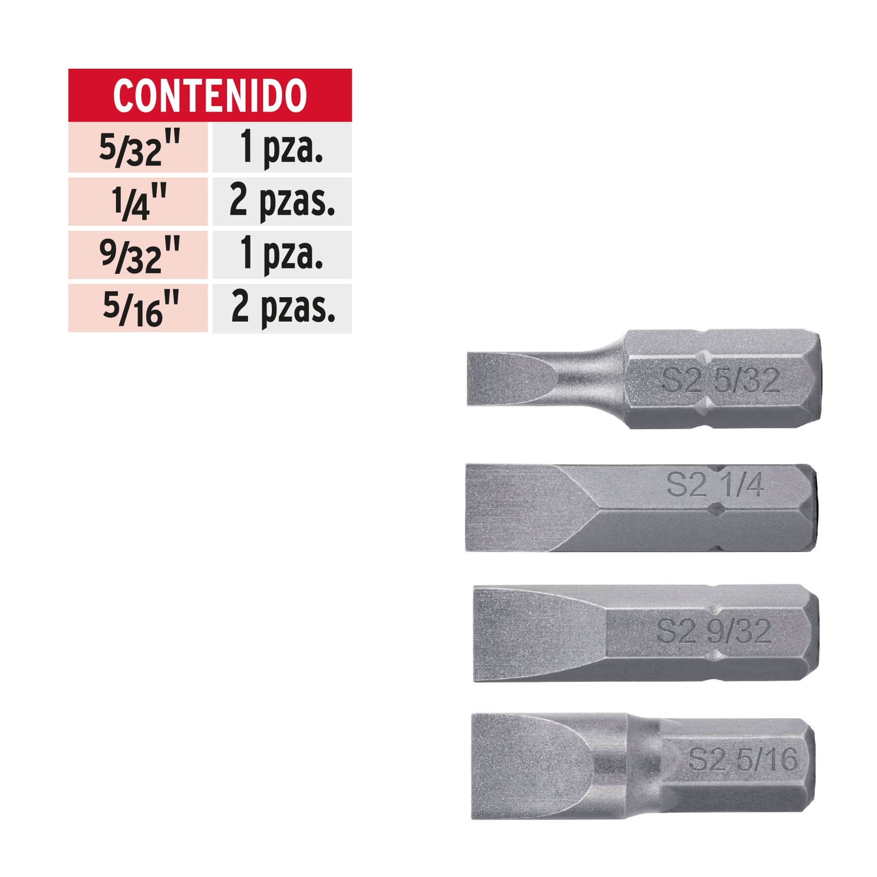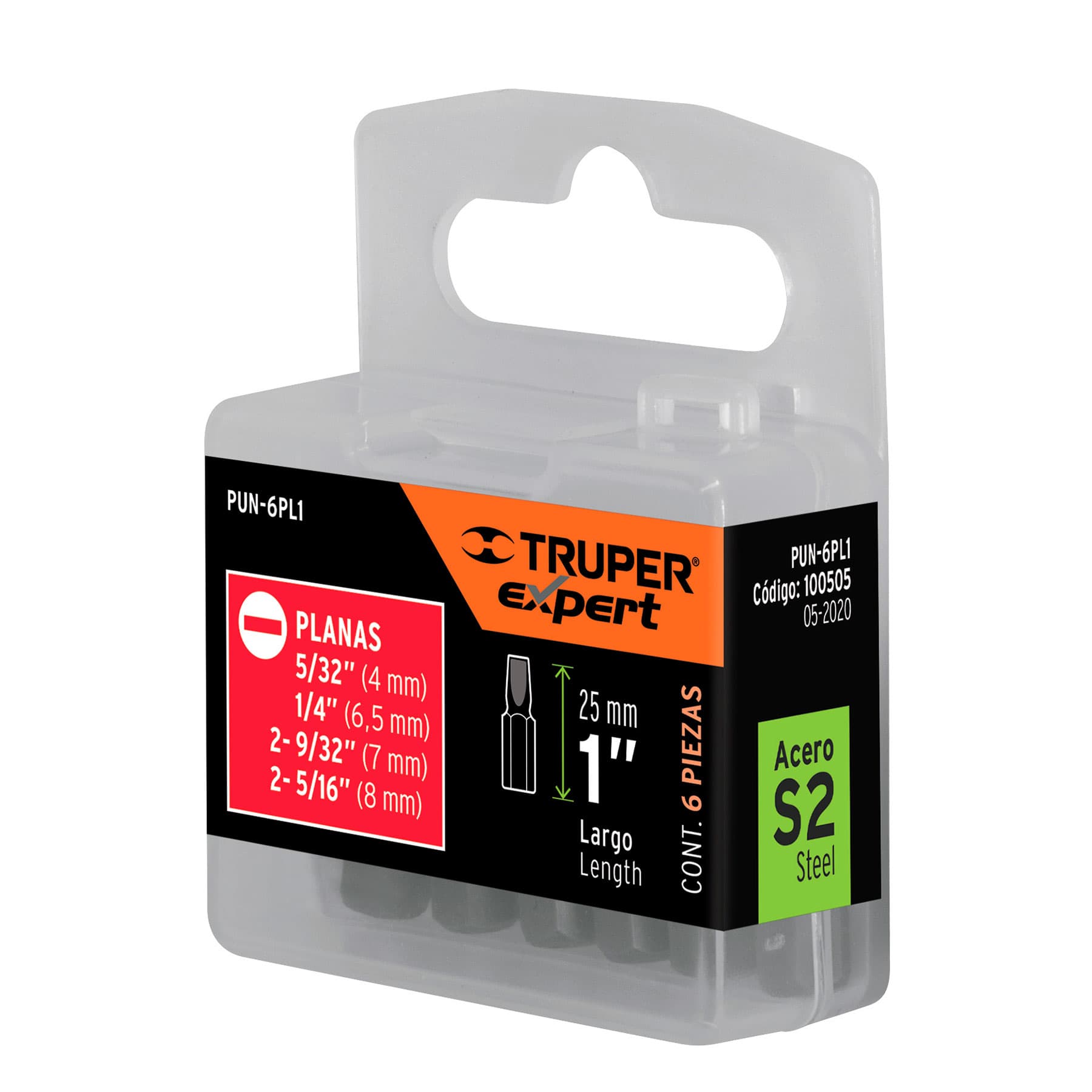 Juego de 6 puntas planas, largo 1", Truper Expert