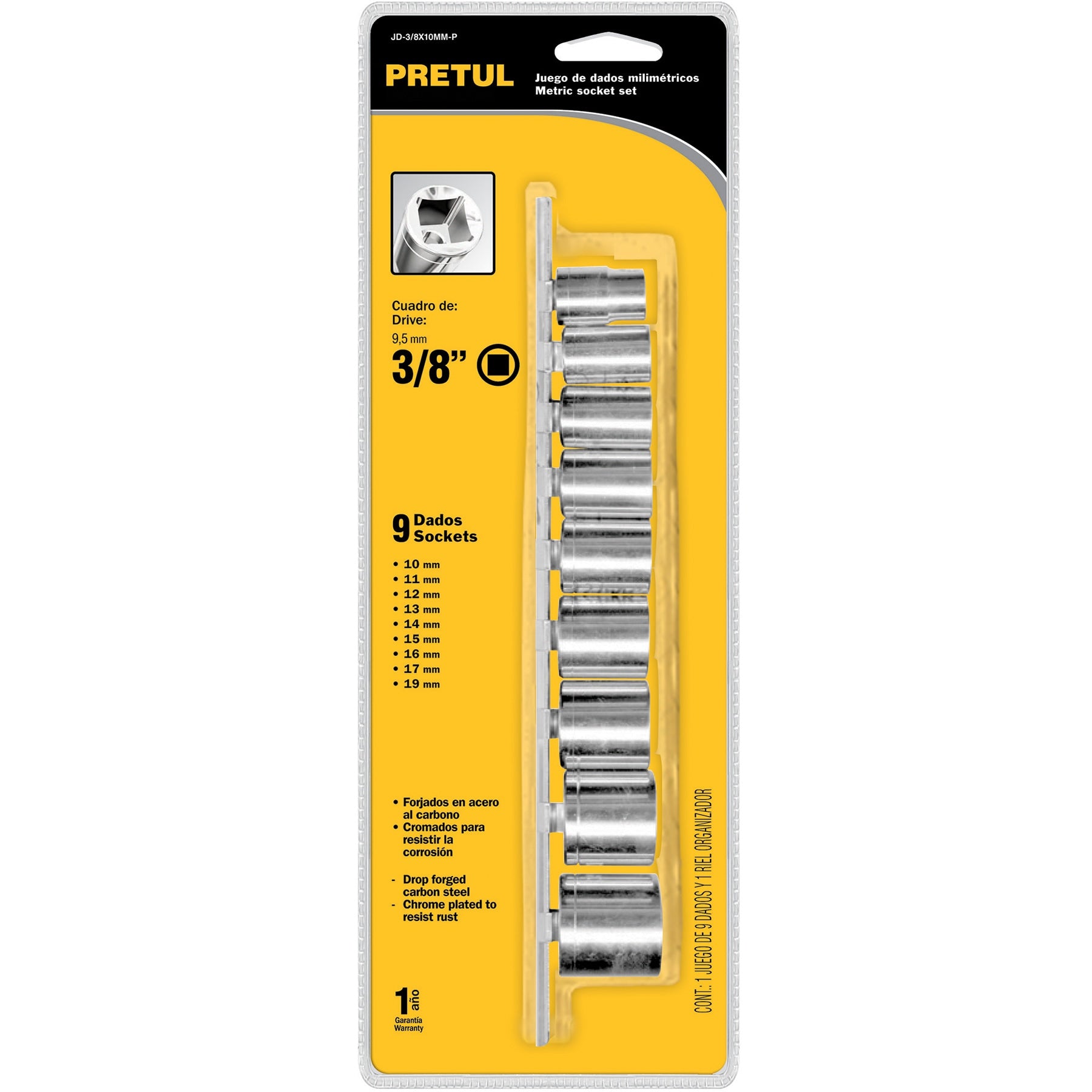 - 9 Dados milimétricos medidas: 10mm, 11mm, 12mm, 13mm, 14mm, 15mm, 16mm, 17mm y 19mm